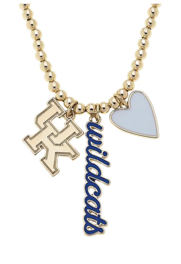 Kentucky Wildcats Ball Bead Charm Necklace in Shiny Gold