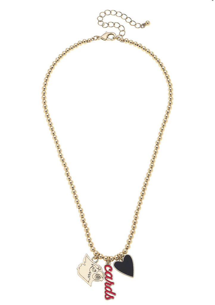 Cardinals Ball Bead Charm Necklace in Shiny Gold