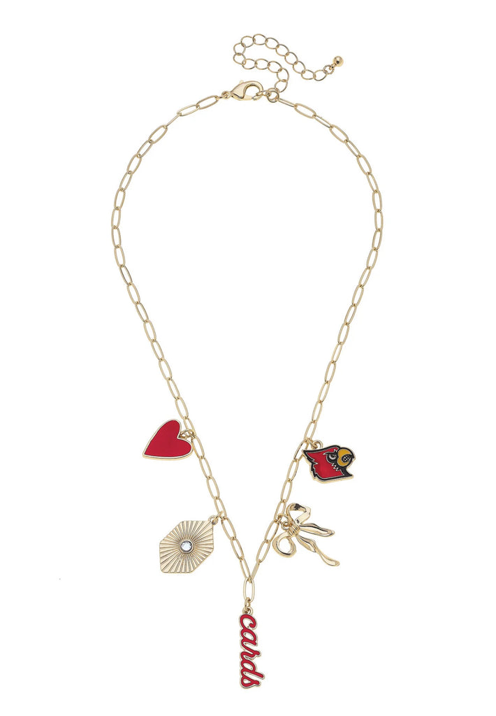 Cardinals Slogan Necklace in Red/Shiny Gold