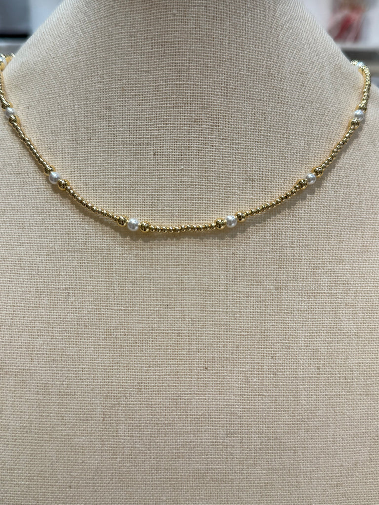 Gold Triple Bead W/ Pearl Beaded 16” Necklace