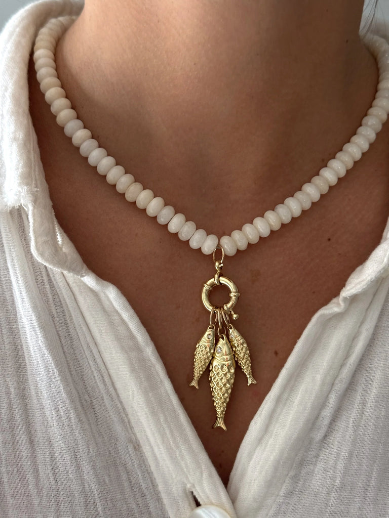 Cream Beaded Necklace with Fish