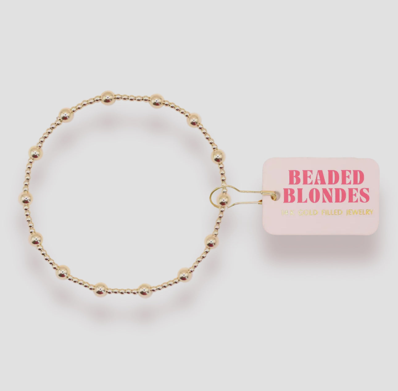 Expertly crafted from delicate silver beads, the Beaded Blondes June Bracelet is the perfect addition to any wrist stack. Its dainty design adds a touch of elegance to any outfit, making it a versatile and stylish accessory. Upgrade your jewelry collection with this stunning bracelet.