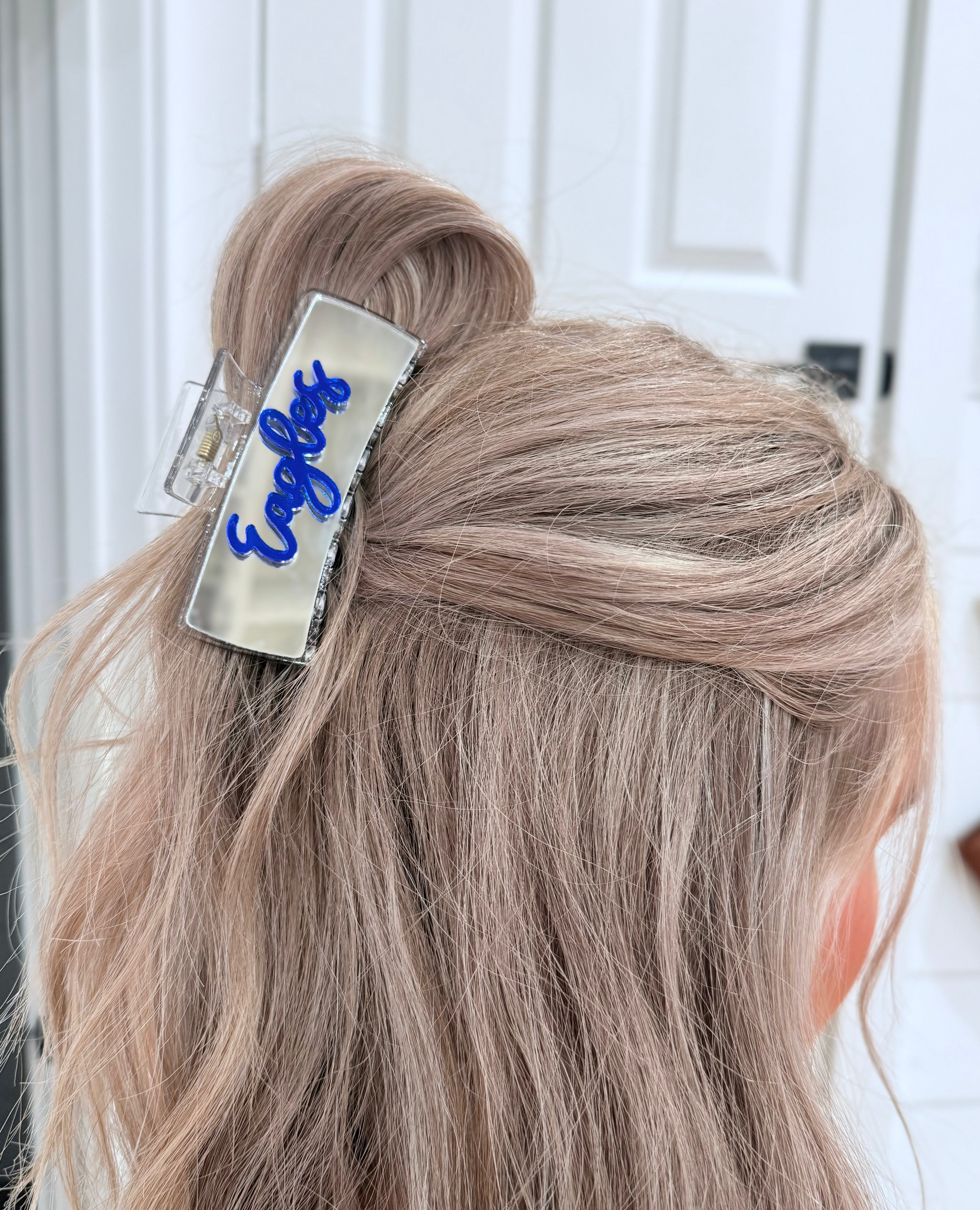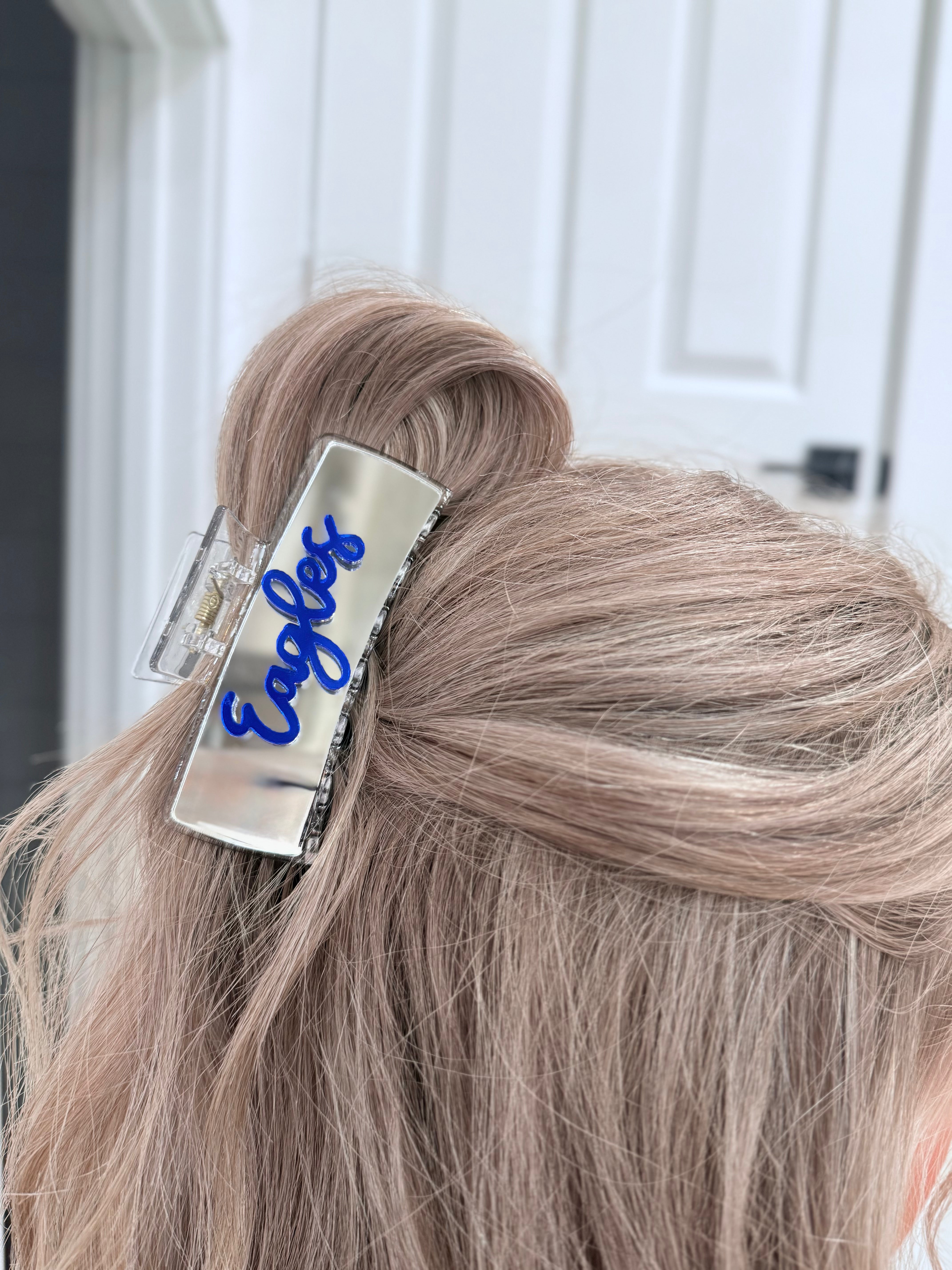 This large hair clip features the iconic Eagles logo and mirror sides, combining fashion and functionality. Keep your hair in place while showing off your team spirit with this must-have accessory.