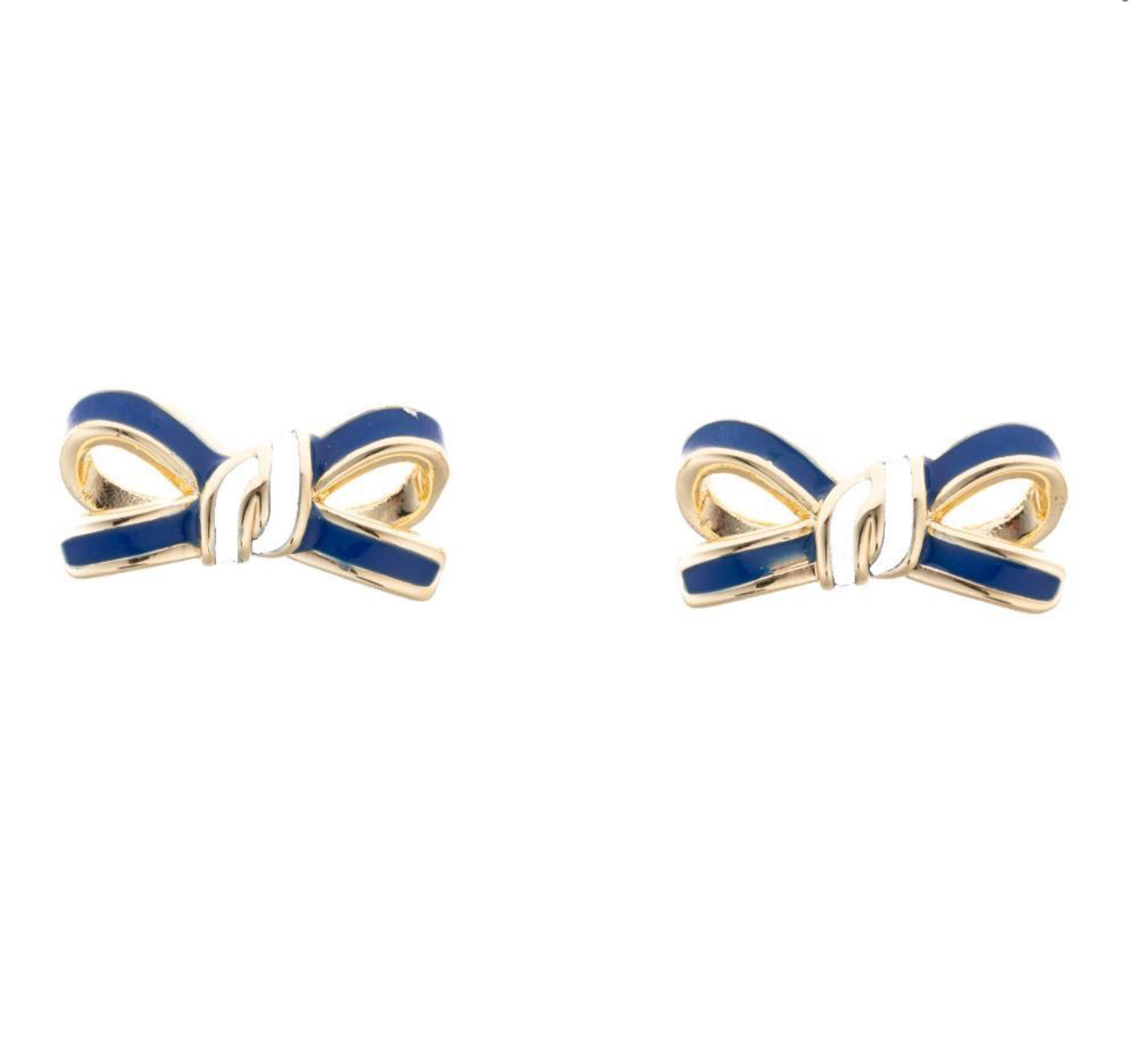 These GameDay Blue & White Bow Earrings feature a sleek white and blue bow design and are crafted with high-quality gold. Perfect for adding a touch of elegance and team spirit to any outfit, these earrings are a must-have for any fashionable sports fan.