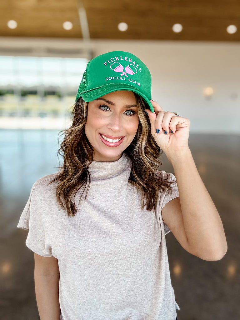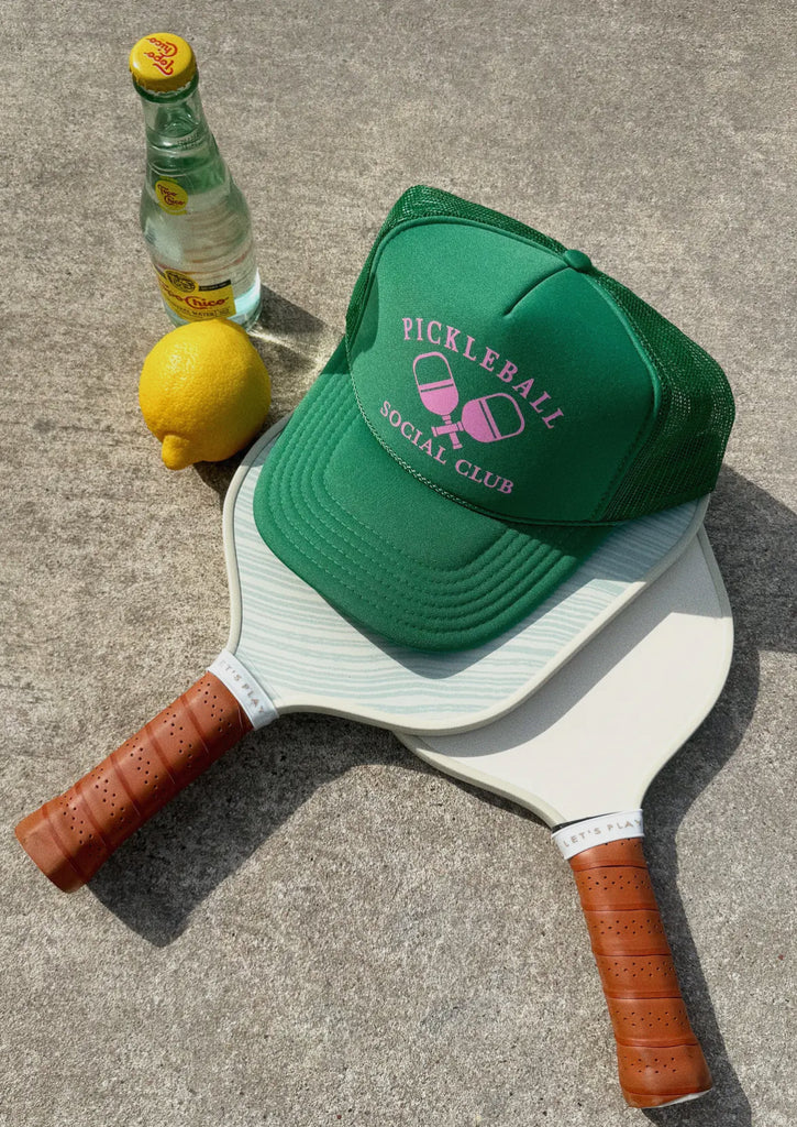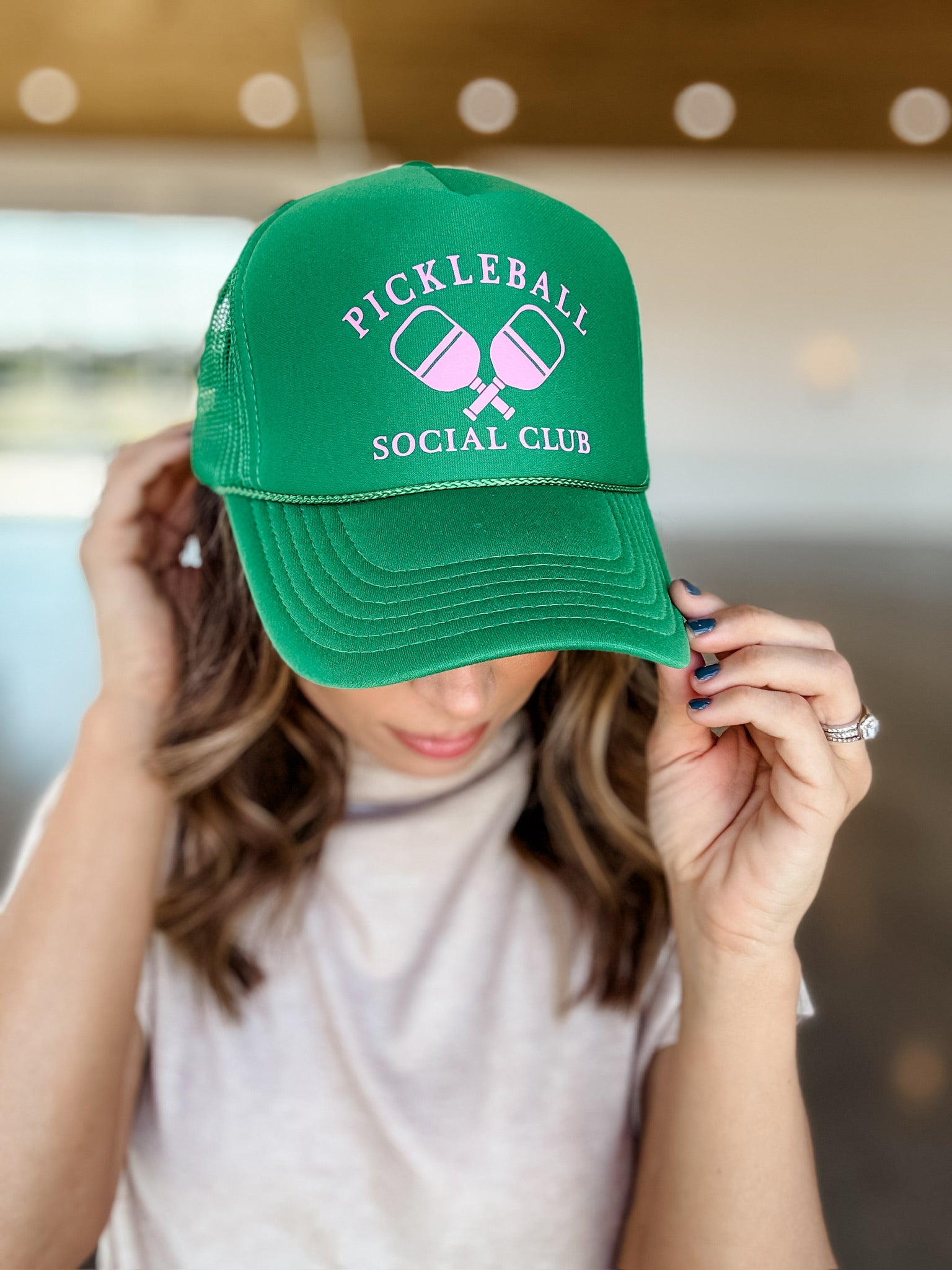 Enhance your Pickleball game with our stylish Pickleball Social Club trucker hat. Made with a bold green and pink design, this hat is perfect for avid players and casual fans alike. Stand out on the court and show off your love for Pickleball with this must-have accessory.