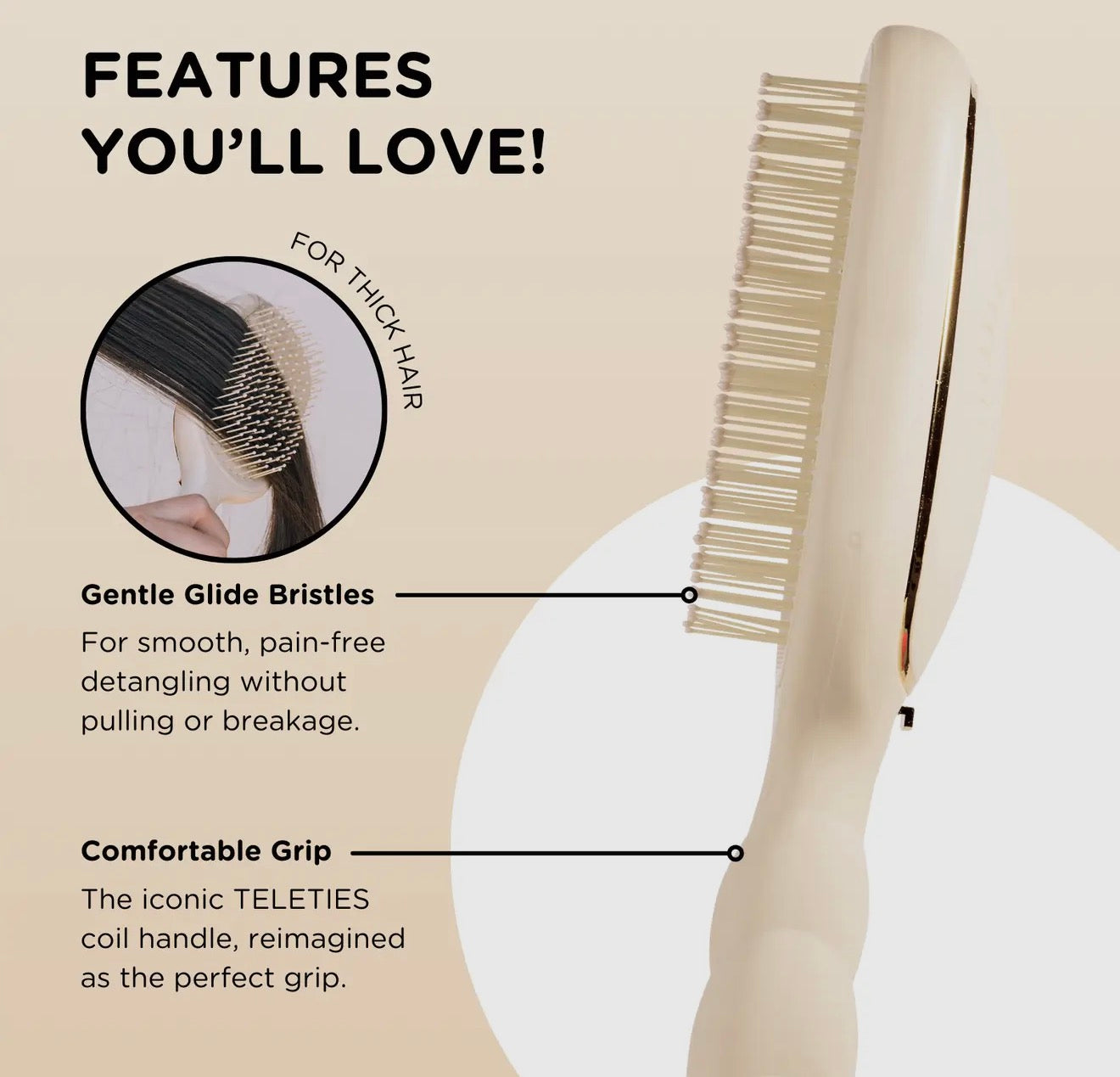 The Detangler Brush for thick hair in Tan is your go-to for smooth, pain-free styling. It easily works through knots without tugging or breaking delicate strands, making it the perfect detangling brush for thick hair.