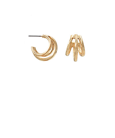 The Triple Layered Hoop is designed with three interlocking metal layers, providing a distinctive aesthetic. Each hoop measures 0.85 inches in length, ensuring a lightweight yet durable accessory suitable for various occasions. The post fastening allows for secure wear, combining style with practicality for everyday use.