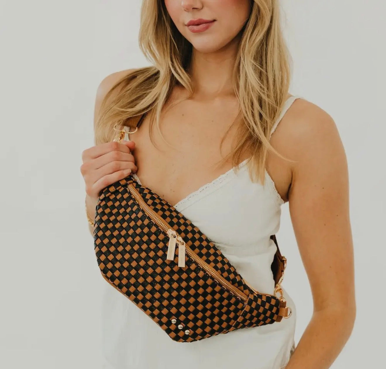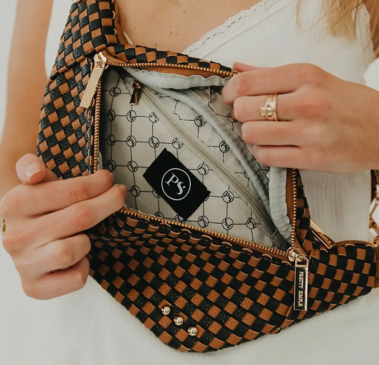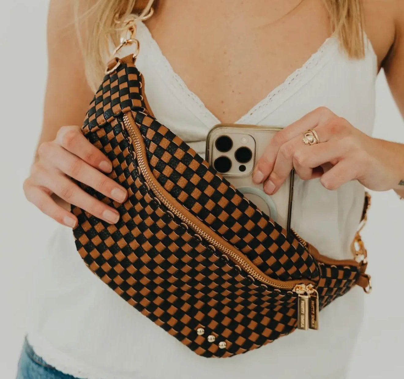 Meet our new Woven Susie Vegan Leather Bum Bag! Made from high quality vegan leather, this must have accessory adds a touch of charm to any outfit while keeping your belongings secure and close. Featuring an interior zipper pocket, a mini interior pocket, lipgloss slots, and an exterior back pocket. You will love your Woven Susie Vegan Leather Bum Bag!