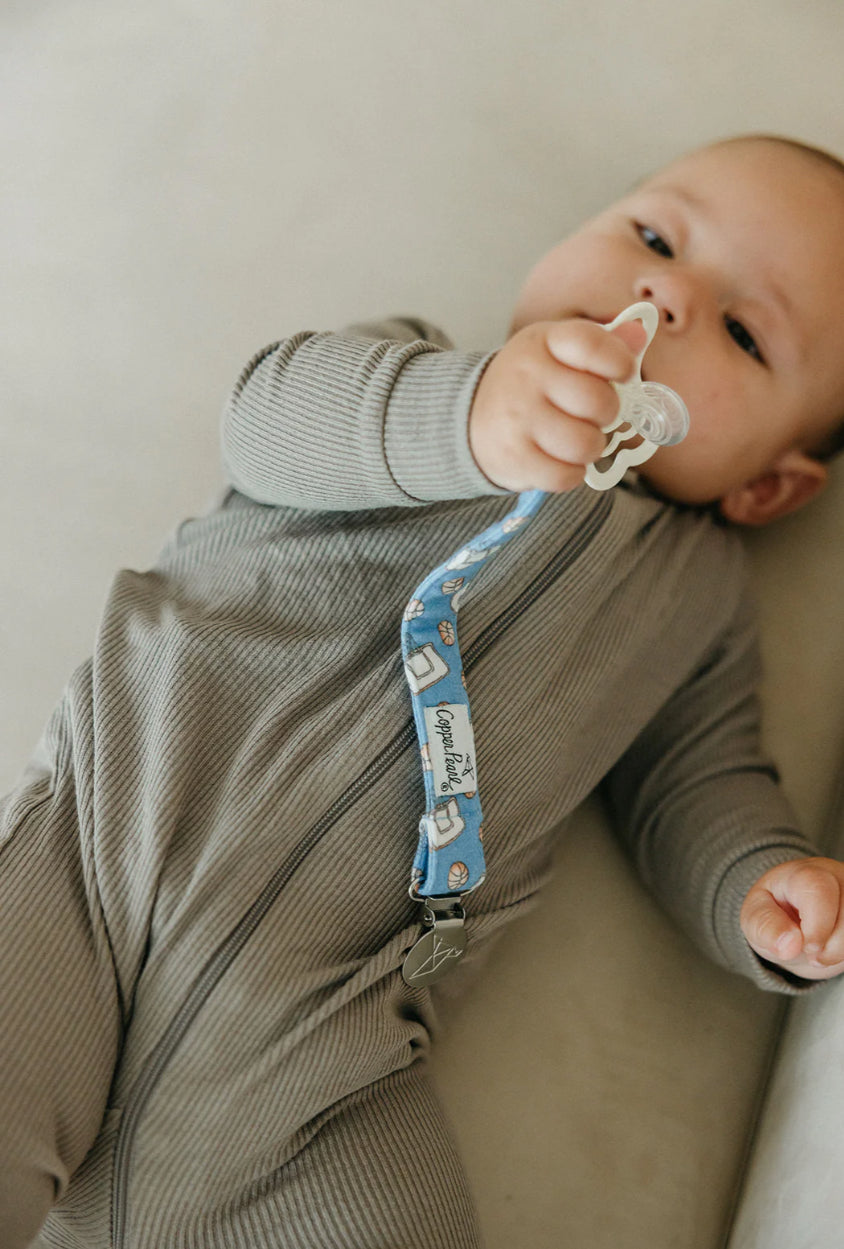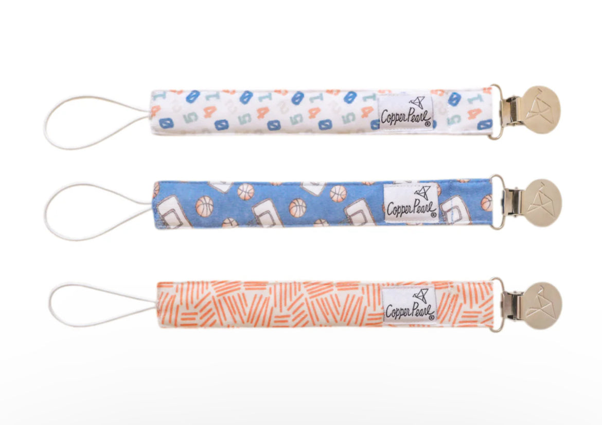 Offering the ultimate blend of fashion and function, our unique Binky Clip features a premium knit strap lined with absorbent fleece to help soak up drool. Simply attach baby's pacifier or teether to one end, then fasten the clip to clothing, blankets or baby gear. Oh, and by the way our set includes three Binky Clips to keep with you wherever you go - no more floor drops or pacifier pick-ups!