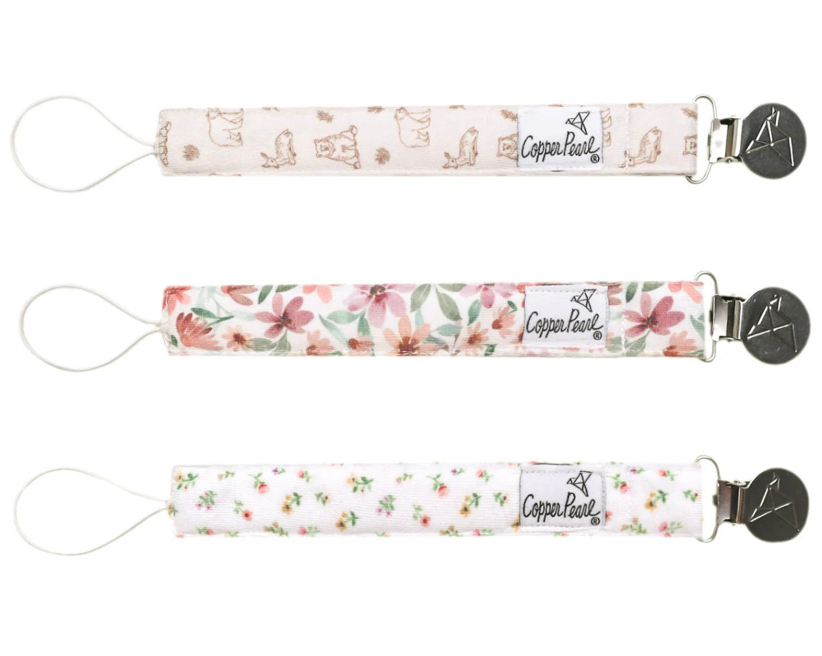 A chic way to keep baby's pacifier close at hand.Offering the ultimate blend of fashion and function, these unique Binky Clip features a premium knit strap lined with absorbent fleece to help soak up drool. Simply attach baby's pacifier or teether to one end, then fasten the clip to clothing, blankets or baby gear. Oh, and by the way the set includes three Binky Clips to keep with you wherever you go - no more floor drops or pacifier pick-ups!