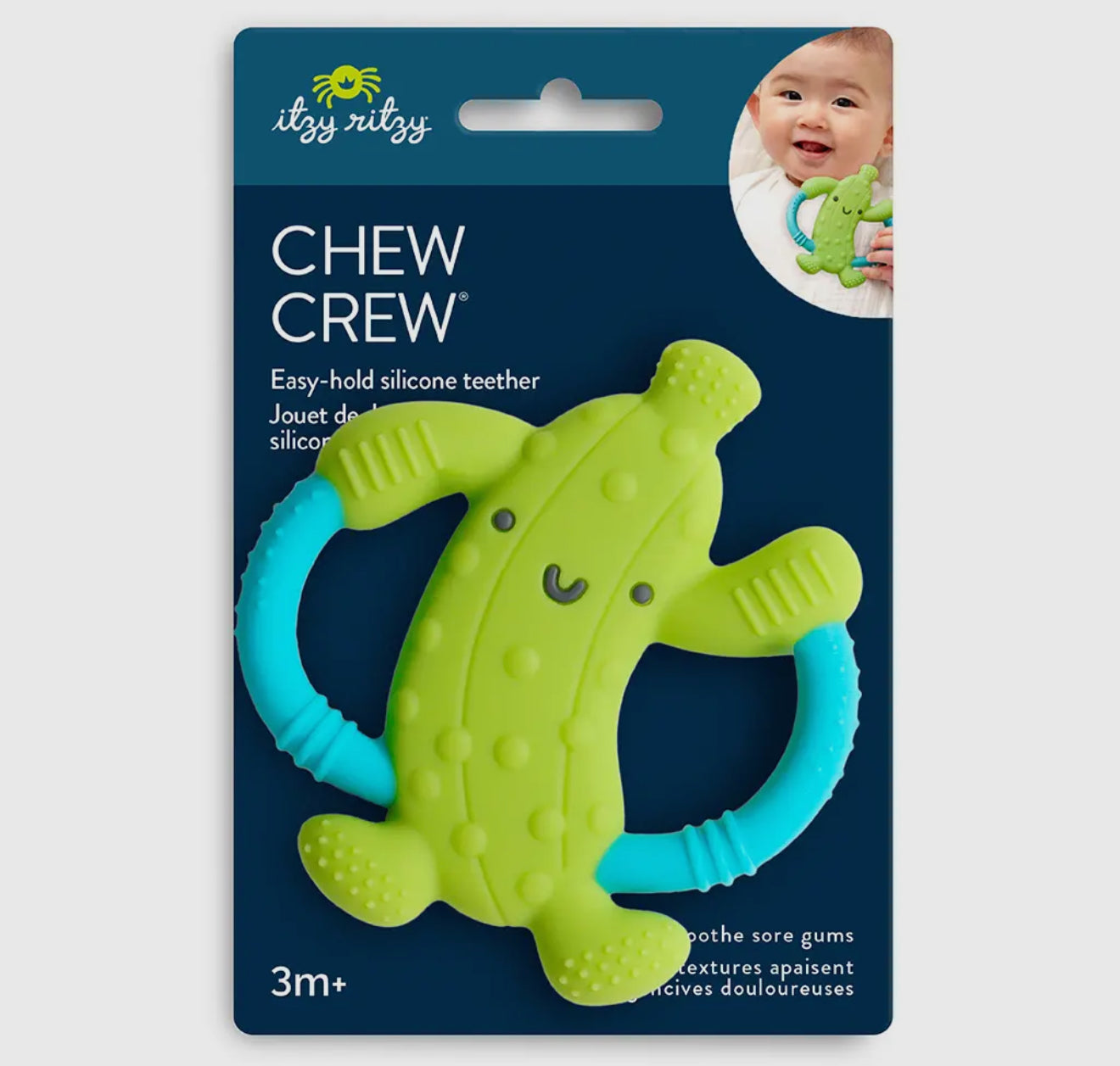 Parker the Pickle! Bid farewell to teething troubles with Itzy Ritzy's Chew Crew™. Crafted with easy-to-hold handles, this teething companion offers soothing relief with a comfy grip for your baby's teething journey.