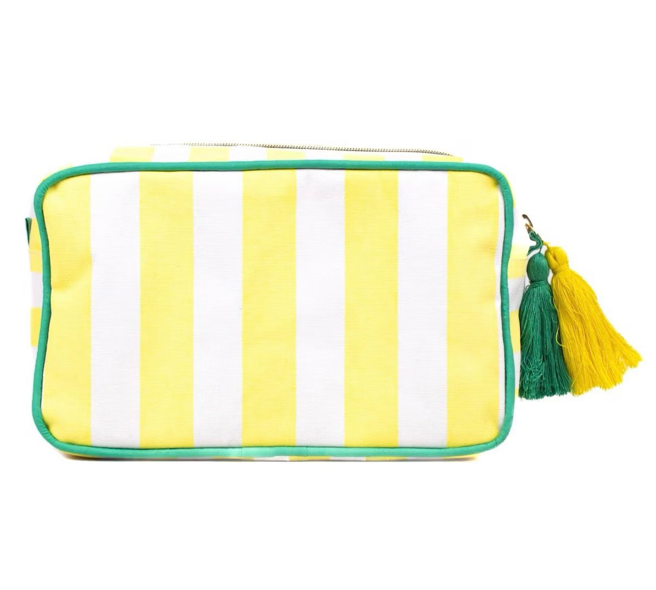 This Megan White/Daisy Cosmetic Tote features a sleek white and yellow design with a convenient tassel zipper. Perfect for organizing and storing all your cosmetic essentials, this tote combines style and functionality for everyday use. Keep your beauty routine on point with this must-have accessory.