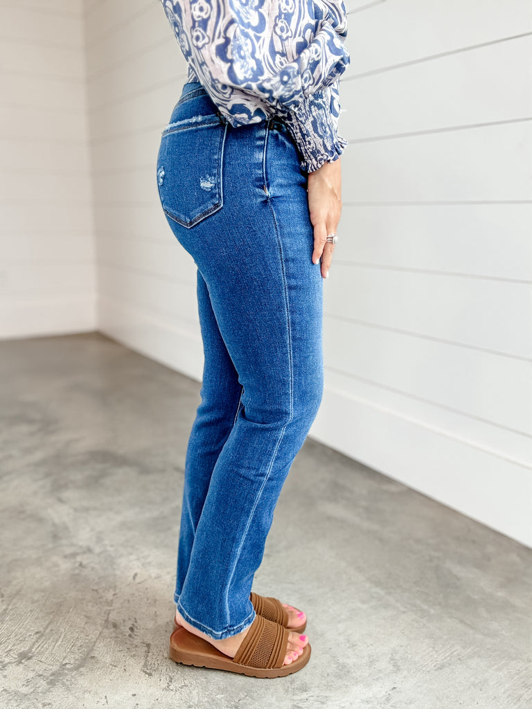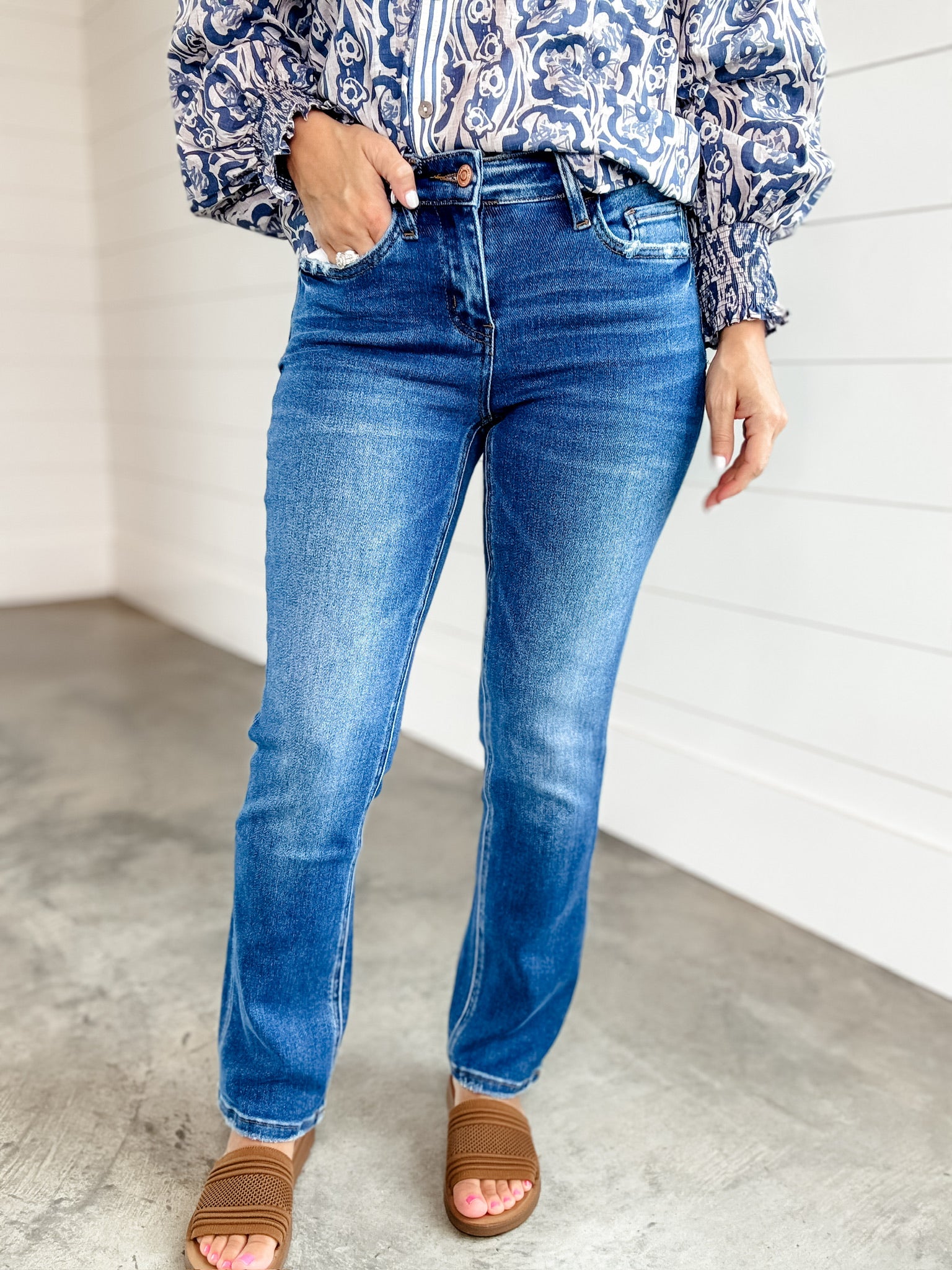 Experience ultimate comfort and style with Flying Monkey Sallie Mid Rise Ankle Slim Straight jeans. These high-quality blue jeans are designed to fit and flatter, providing both durability and fashion-forward aesthetics. Elevate your wardrobe with these must-have jeans.