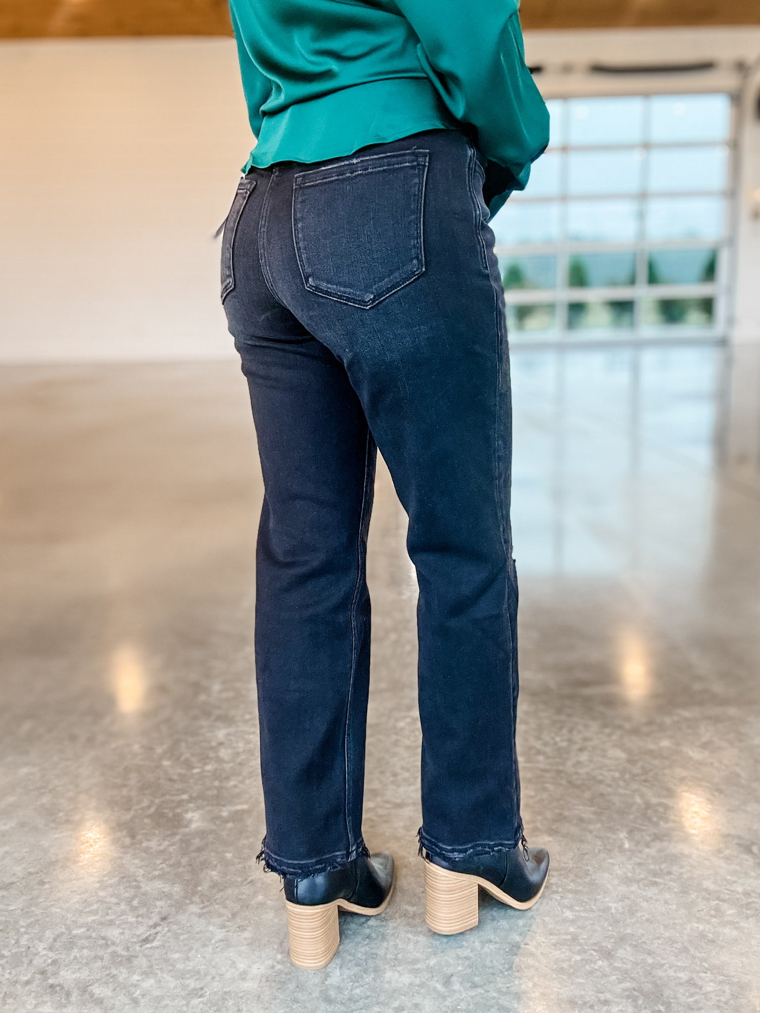 The Verdant Gleam Mid Rise Ankle Straight Jeans combine expert tailoring with practical comfort. Constructed from stretch denim, these jeans offer flexibility without sacrificing shape.