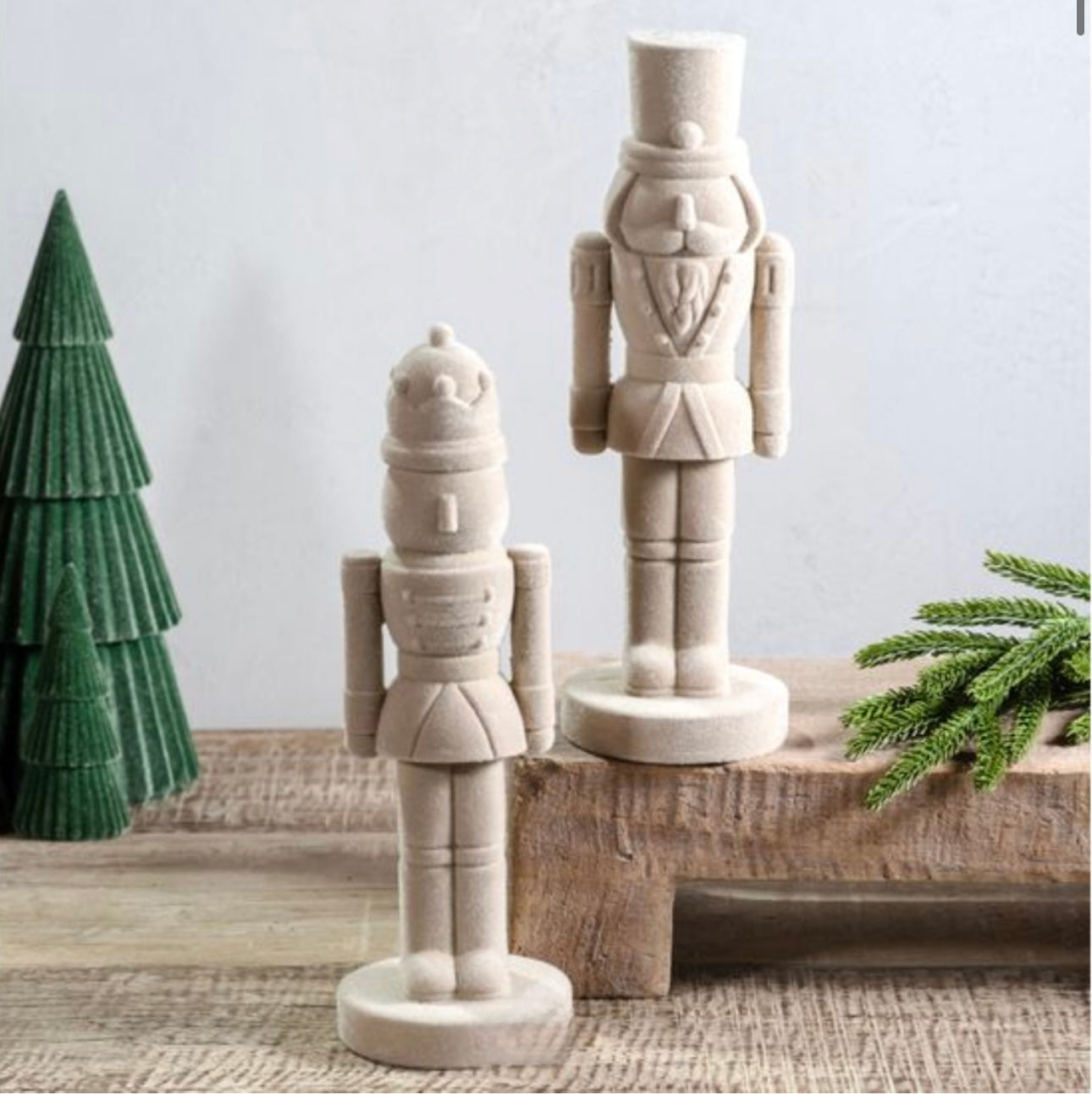 Introducing the Ivory Nutcracker, a classic holiday essential. Made with ivory velvet and available in 2 styles, this nutcracker is the perfect addition to your festive decorations. Add a touch of elegance and tradition to your home this season.
