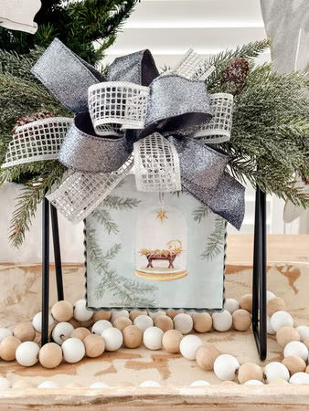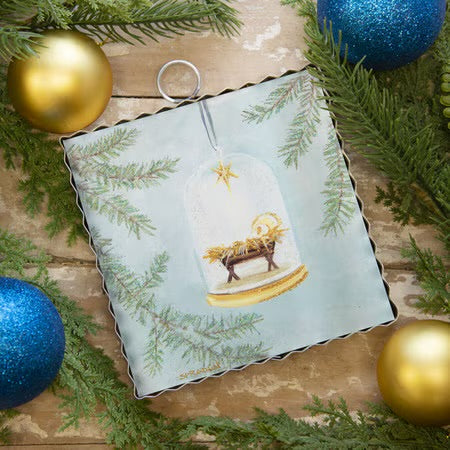 This Mini Gallery Baby Jesus Ornament is a versatile holiday decor piece. Use it as an elegant ornament on your Christmas tree or a charming table top decoration. The intricate design showcases Baby Jesus in a manger, accented with a touch of glitter for a festive touch. Perfect for adding a special touch to your holiday celebrations.