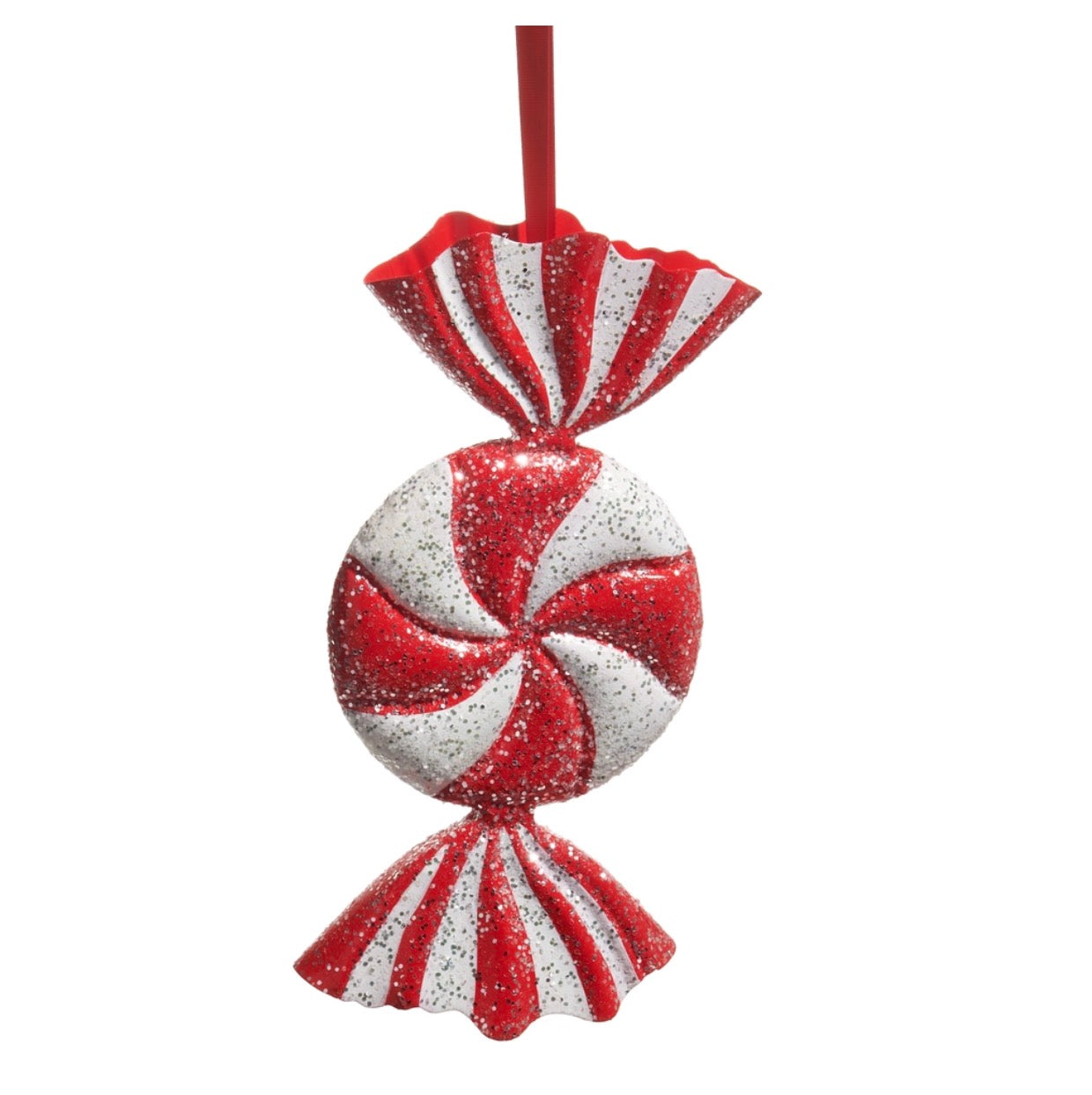 The RAZ 12" Red And White Candy Ornament is a festive addition to your holiday decor. Made with 12" of red and white peppermint candy, this ornament adds a touch of sweetness to any tree or wreath. Crafted with expert precision, this candy ornament is sure to be a standout piece in your holiday decorations.