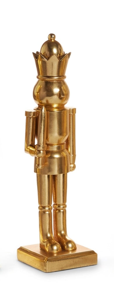 Expertly crafted and beautifully designed, the RAZ 18" Gold Nutcracker adds a touch of elegance to any holiday decor. Made with a stunning gold finish, this 18" nutcracker is the perfect addition to your collection. Its quality construction ensures durability for years to come. Bring the magic and tradition of nutcrackers to your home with this exquisite piece.