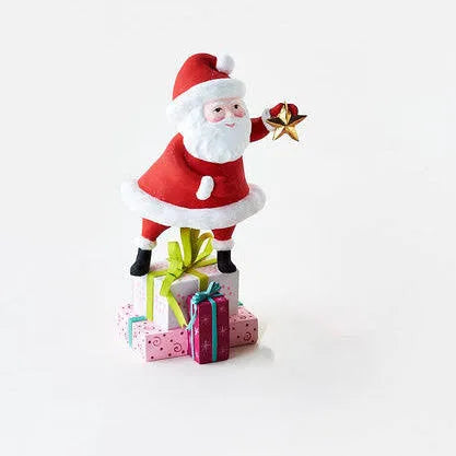 This expertly crafted Santa figurine is the perfect addition to your holiday decor. The colorful presents he carries evoke a sense of joy and excitement, adding a festive touch to any room. Made with attention to detail, this figurine captures the spirit of the holiday season.