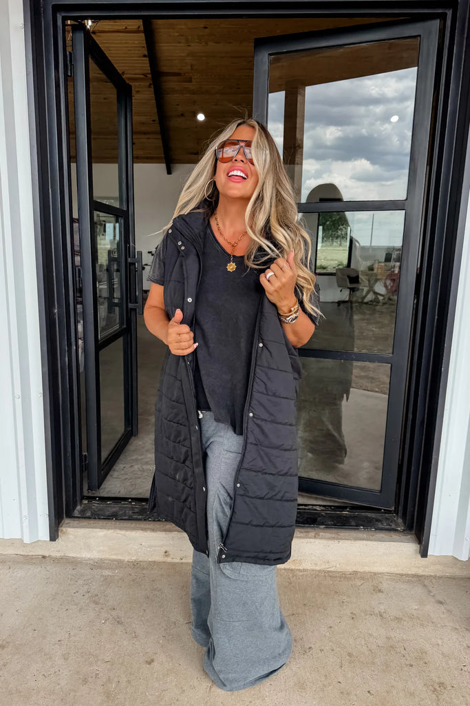 Winding Roads Long Puffer Vest | Black