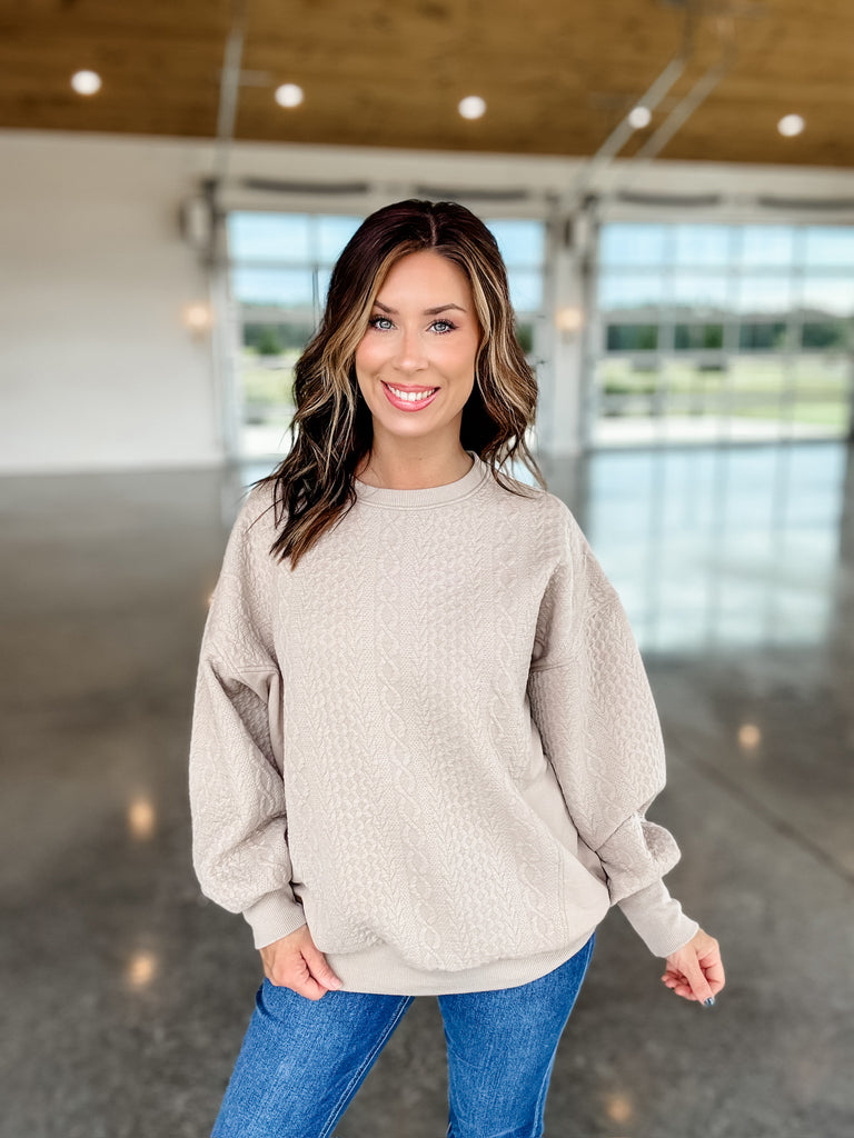 Royce Oversized Waffle Knit Crewneck | Sand