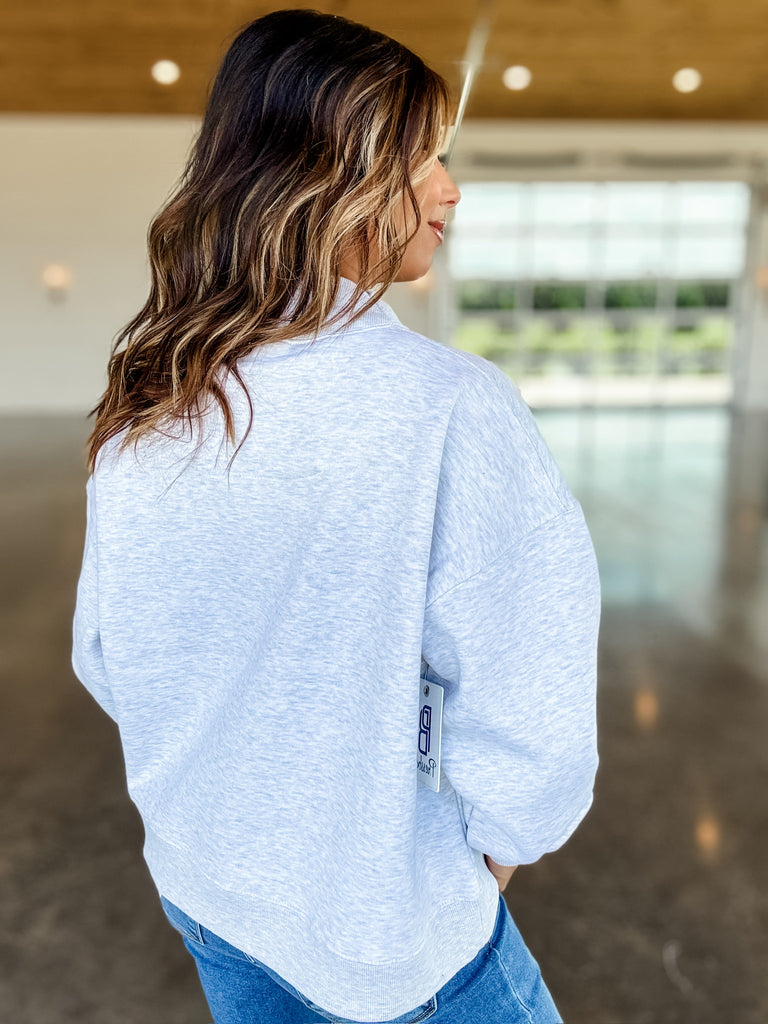 The Kentucky Light Grey Mocked Crewneck is a stylish and versatile addition to any wardrobe. Made from high-quality light grey fabric, it features a flattering mocked crewneck design and a cropped fit. Perfect for layering or wearing on its own, this top adds a touch of sophistication to any outfit.