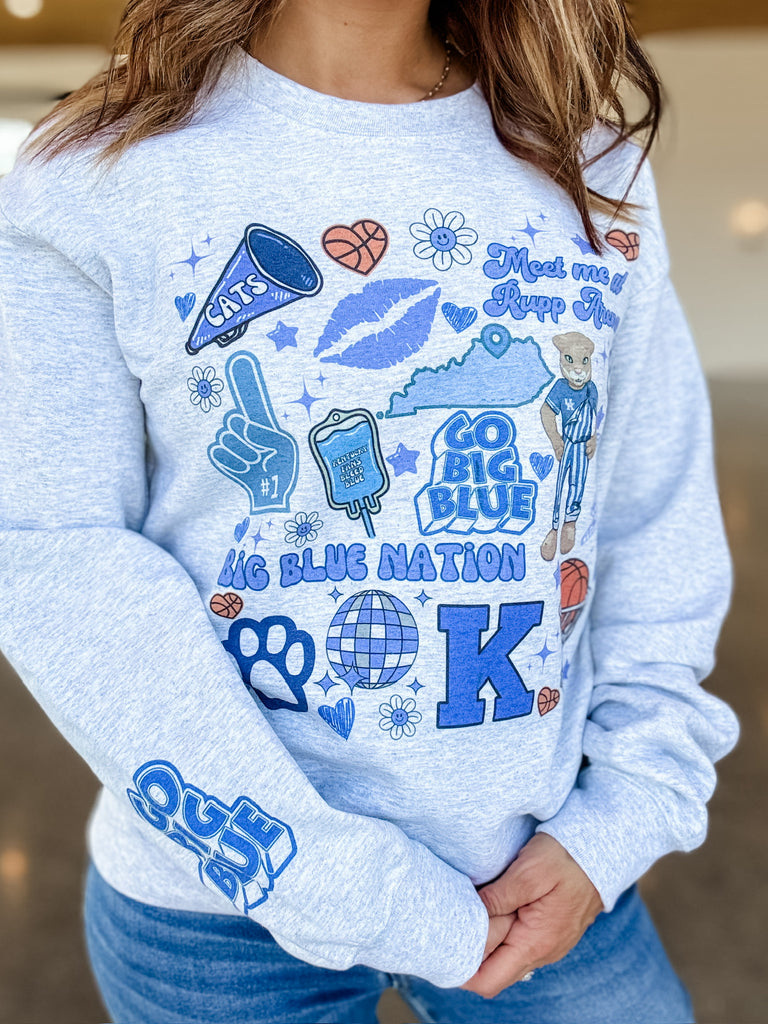 "Experience the ultimate game day look with Meet Me at Rupp Arena's fun collage, featuring iconic Kentucky fans and the famous Big Blue Nation. Show your team spirit with the bold designs. Cheer on with style and pride!"