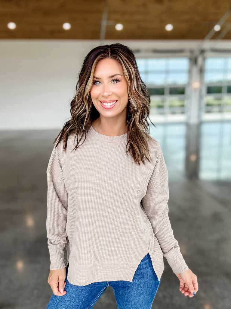 Expertly crafted for ultimate comfort, the Royce Oversized Waffle Knit Crewneck is the perfect addition to your loungewear collection. Made with soft waffle knit fabric and featuring a long slide vent, this crewneck offers a relaxed and oversized fit for all-day wearability. Upgrade your cozy game today.