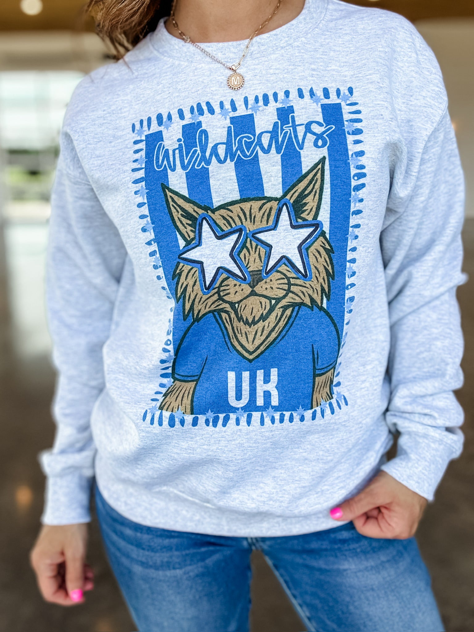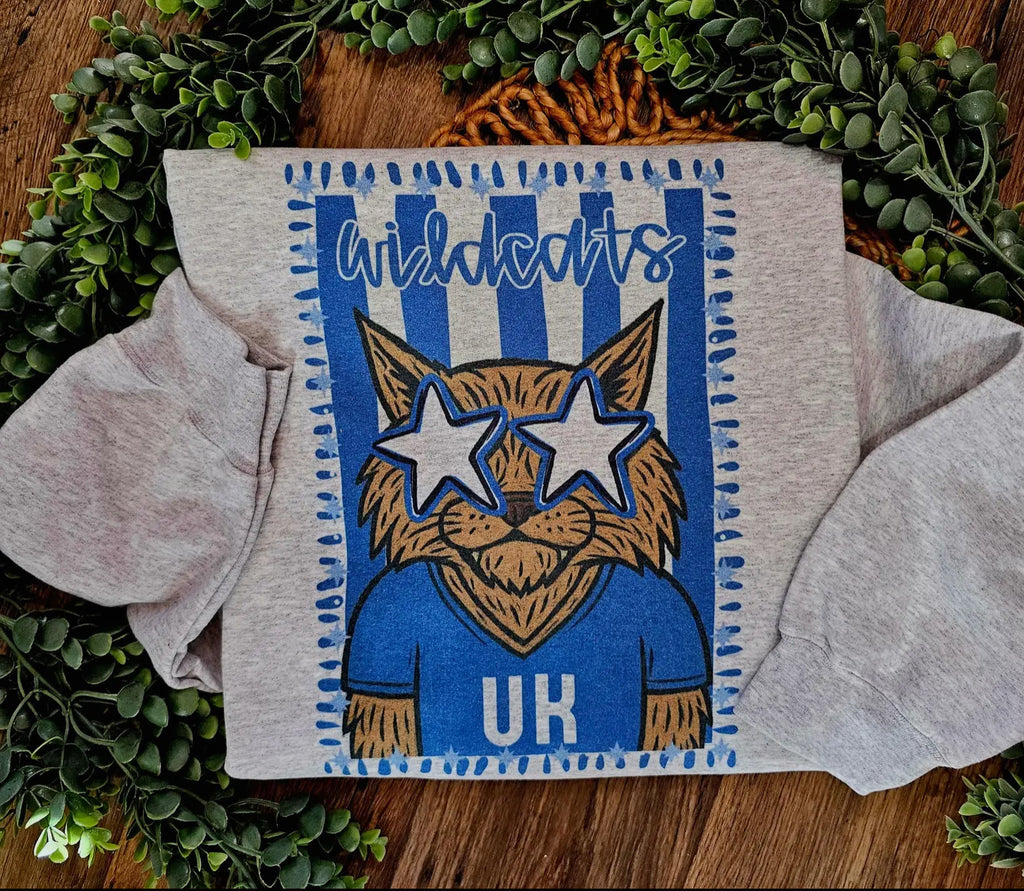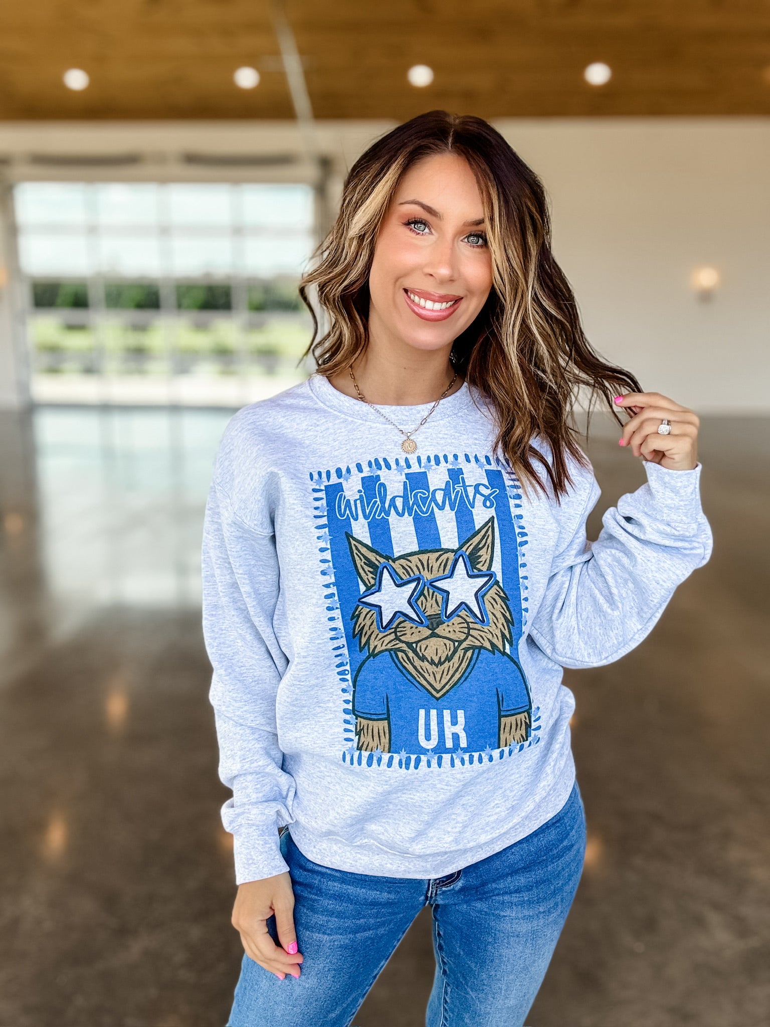 Experience ultimate comfort and school spirit with our Kentucky Wildcats Preppy Mascot Gildan Sweatshirt. Made from a soft and durable crewneck fabric, it features the iconic UK Wildcats logo for a stylish look. Stay warm and show your team pride with this must-have sweatshirt.