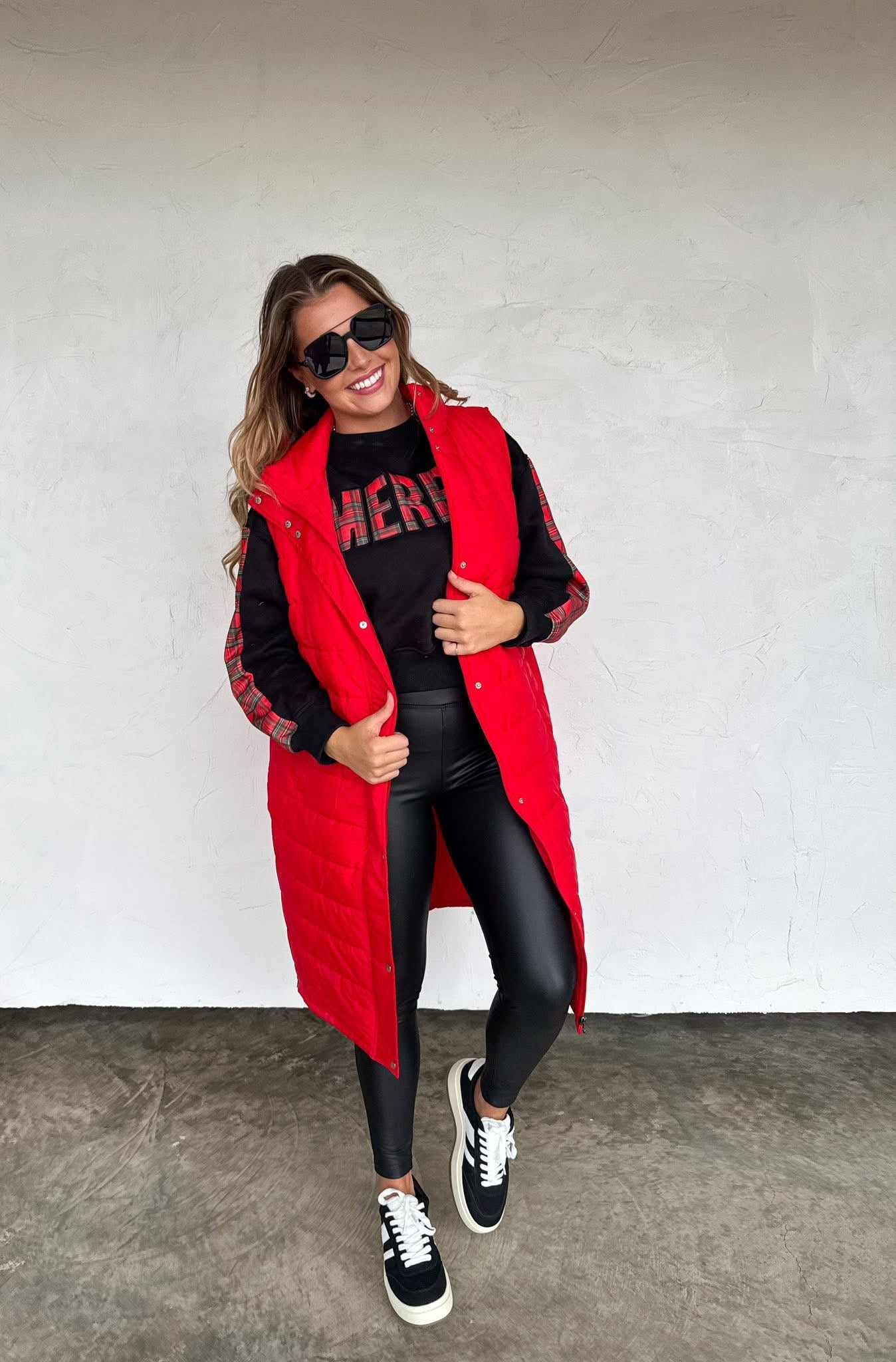 Expertly designed for all your outdoor adventures, the Winding Roads Long Puffer Vest in Red is a must-have for any wardrobe. Featuring a sleek button and zipper closure, as well as a convenient side zipper at the bottom, this vest provides both style and practicality. Stay warm and stylish on the go in this timeless olive color.