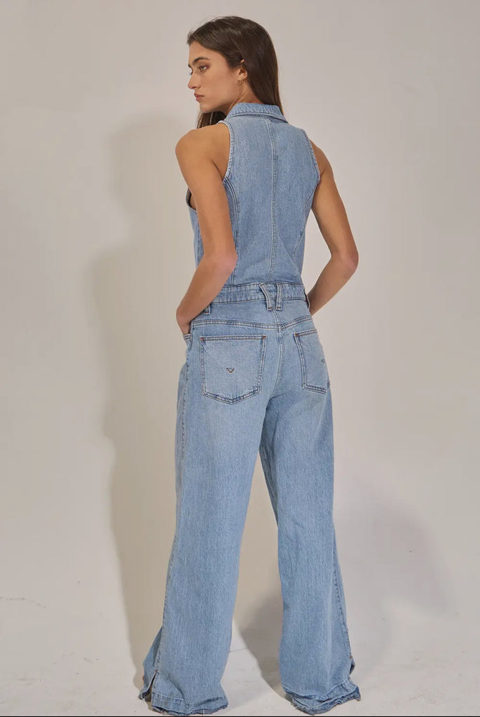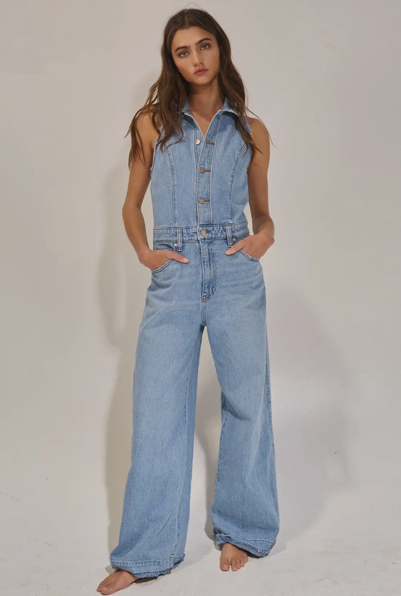 Introducing the Cash In Your Chips Romper, a collared wide leg denim jumpsuit that combines style and function. The perfect addition to your wardrobe, this jumpsuit offers a sophisticated and trendy look while providing maximum comfort. With its wide leg design, it allows for easy movement and versatility in styling. Upgrade your fashion game with this must-have piece.