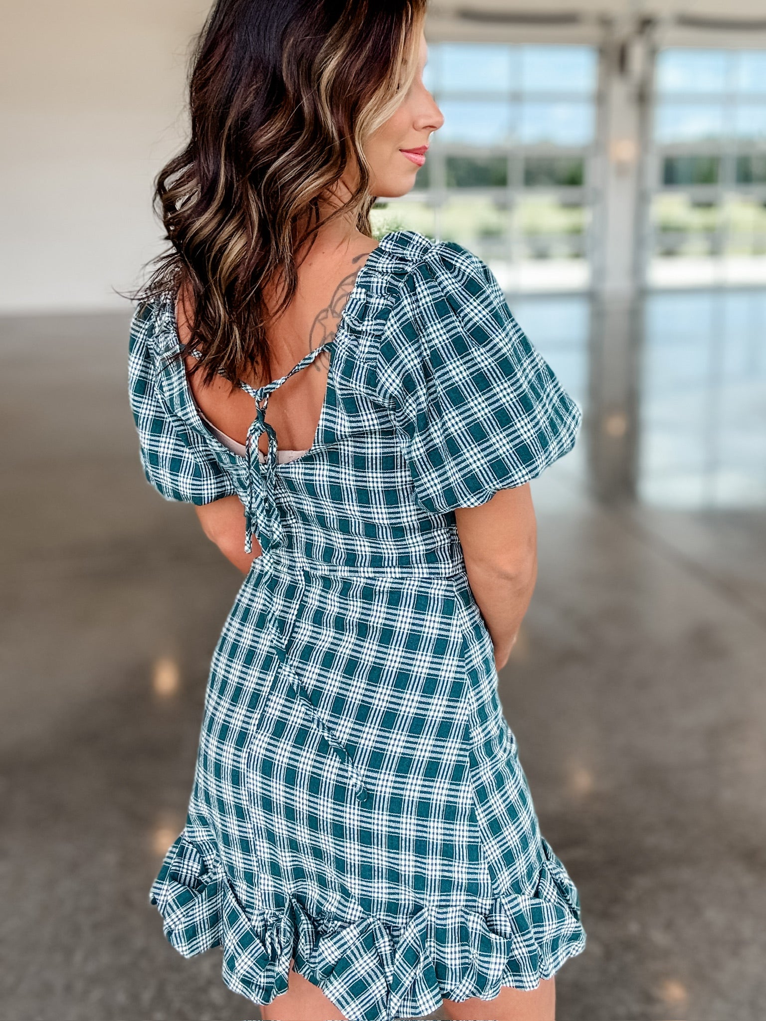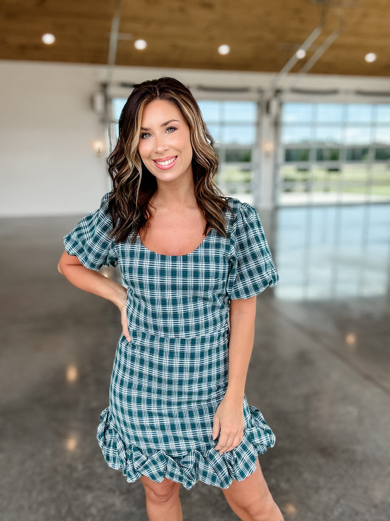This Plaid Puff Short Sleeve Ruffle Mini Dress is the perfect choice for any festive occasion. The unique open back and A-line design add a touch of elegance, while the ruffle detailing adds a playful flair. With its timeless plaid pattern, this dress is sure to make you stand out.
