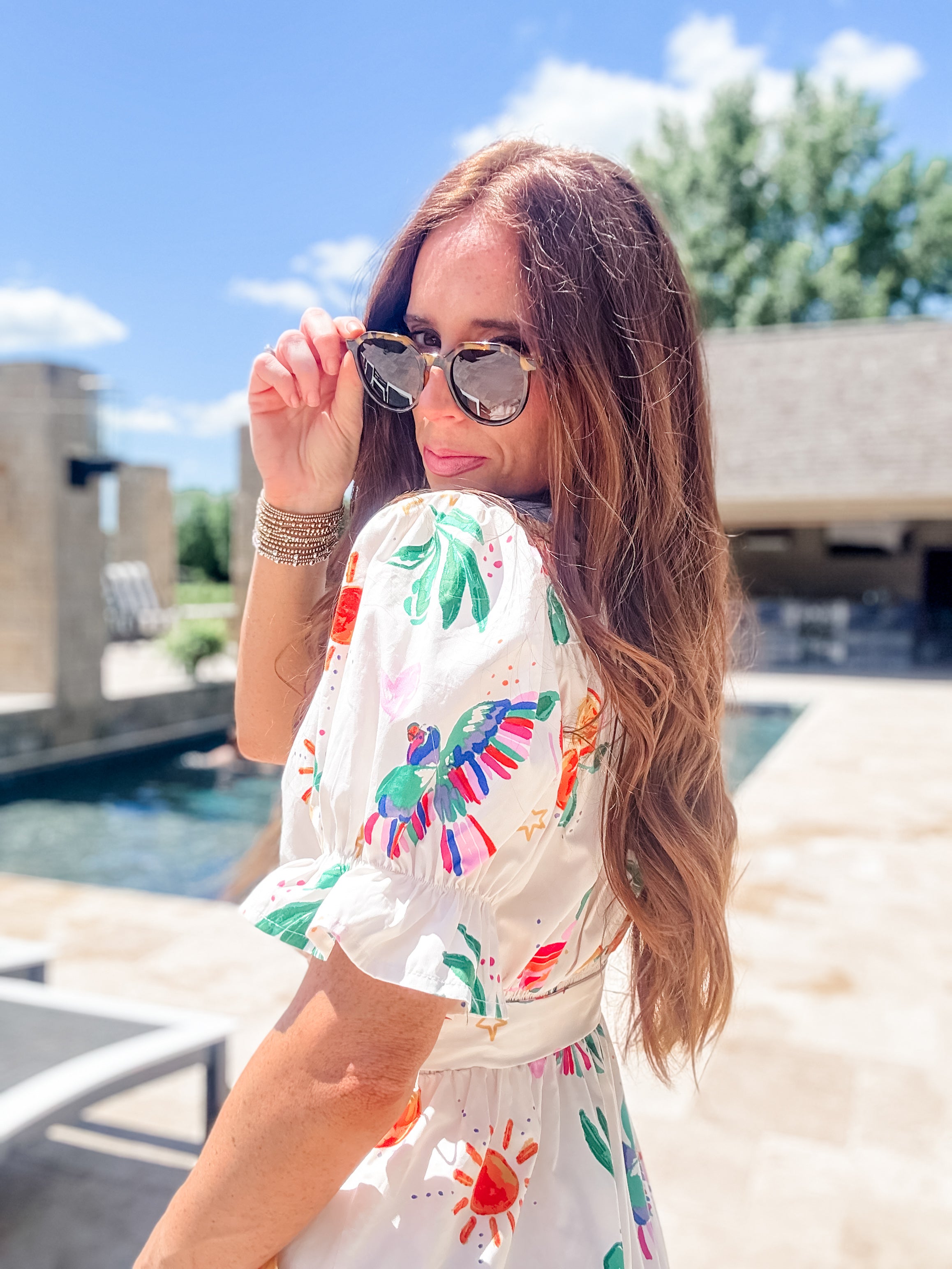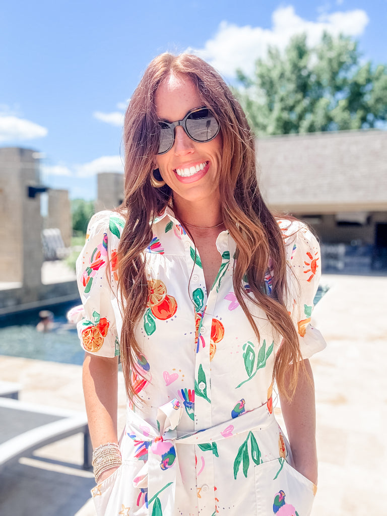 Effortlessly embody island vibes in our On Island Time Romper. With a flattering waist tie and playful puff sleeves, this tropical short romper will have you feeling relaxed and stylish. Perfect for any warm weather occasion, it's a must-have for your summer wardrobe.
