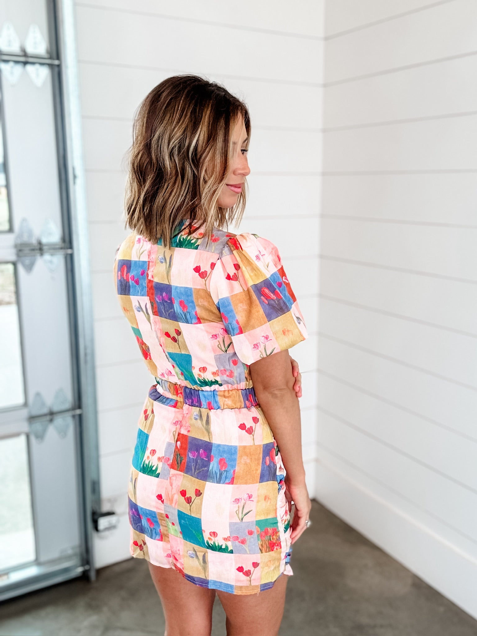 The Petal Patchwork Dress features a distinctive patchwork design adorned with floral motifs, enhancing its aesthetic appeal. The side detail provides a tailored fit, while the back zipper ensures ease of wear. This dress offers a blend of style and functionality, suitable for various occasions.