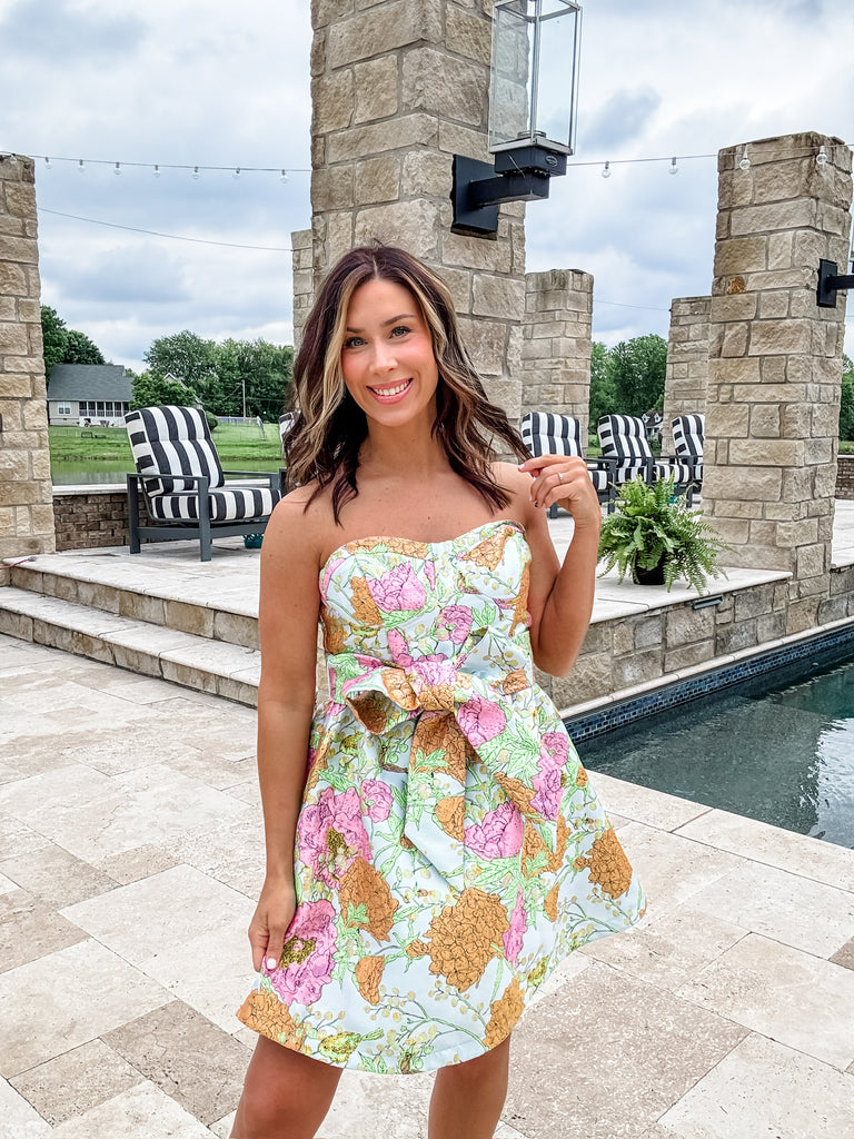 Expertly crafted with a beautiful sage, pink, and green floral pattern, the Spring Garden Dress is a must-have for any fashion-forward individual. The tube style creates a chic and flattering silhouette, while the waist bow accent adds a touch of elegance. Perfect for any occasion.