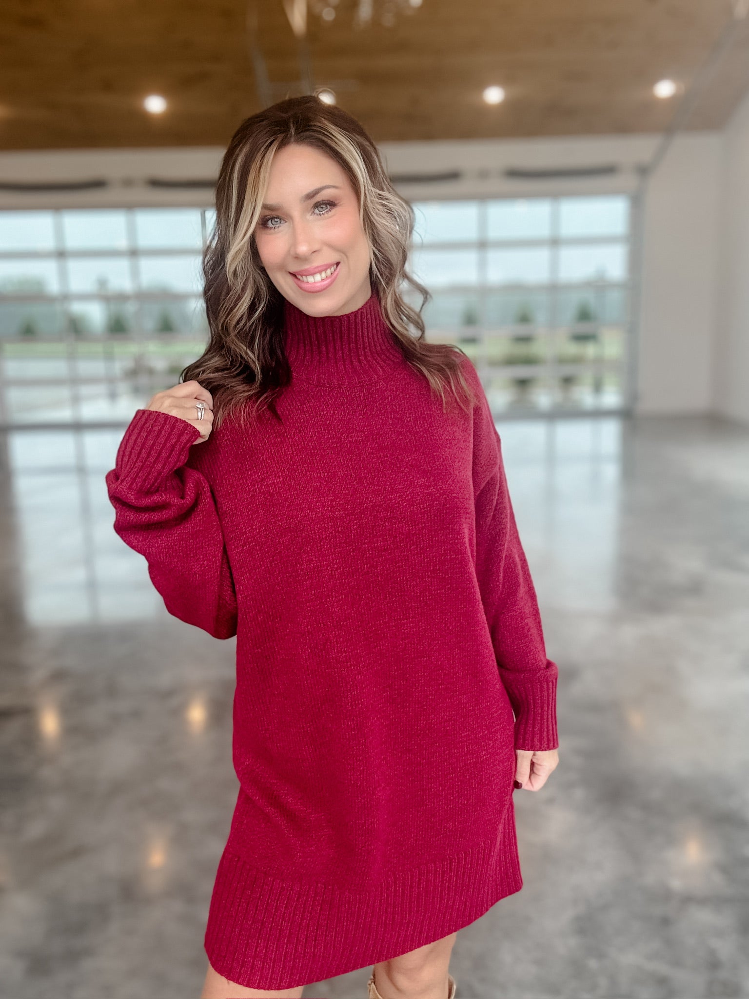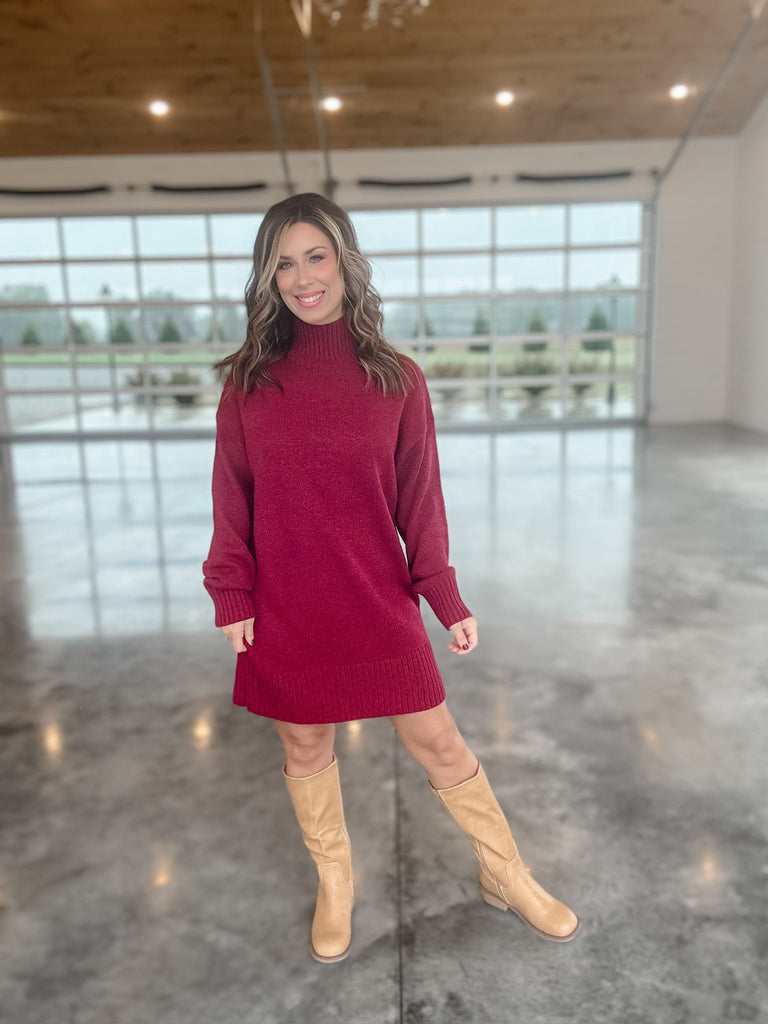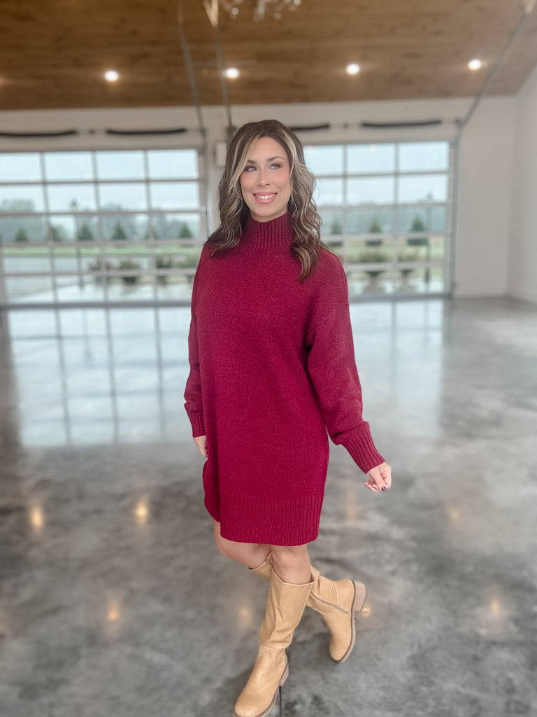 Upgrade your winter wardrobe with our Feeling Festive Red Turtle Neck Sweater Dress. Made from high-quality material, this dress combines both style and warmth. Perfect for holiday parties or casual outings, this dress will keep you cozy and fashionable all season long.
