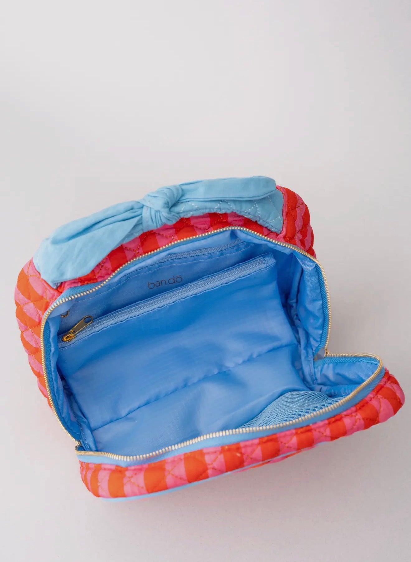 This adorable organizer features a quilted exterior, a bow handle, and lots of pockets to keep everything in its place.