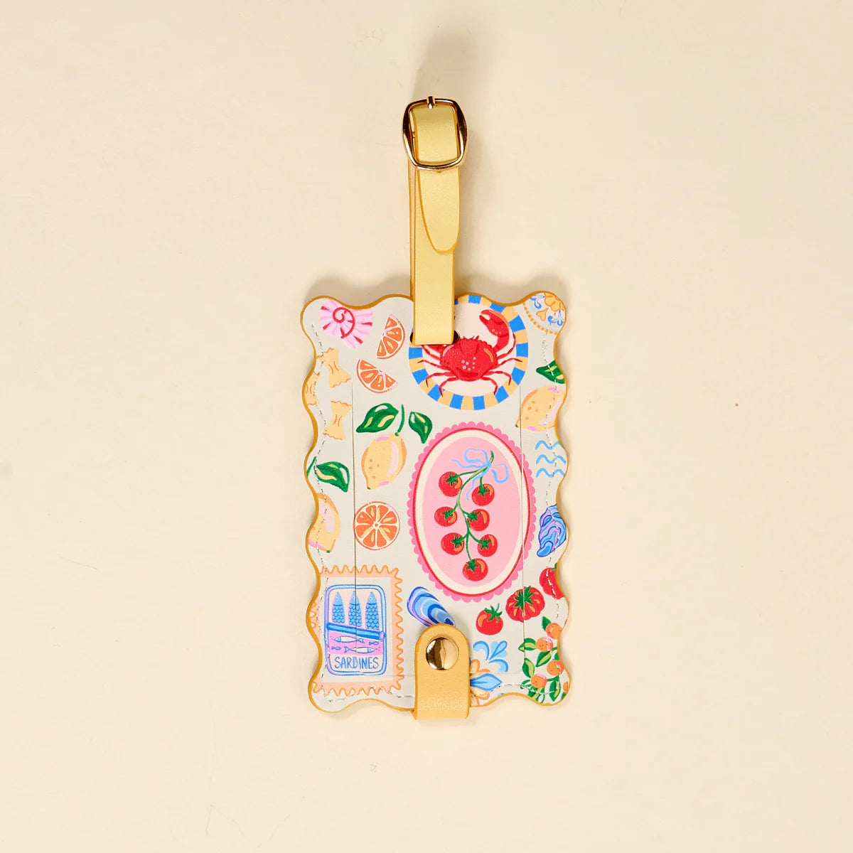 This luggage tag features a scalloped edge and clean design that instantly dresses up your suitcase. A privacy flap keeps your personal information tucked away, while the structured backing helps the tag stay in place during travel. The bright, polished style makes it easy to spot on a busy luggage carousel. It adds both charm and practicality to every trip.