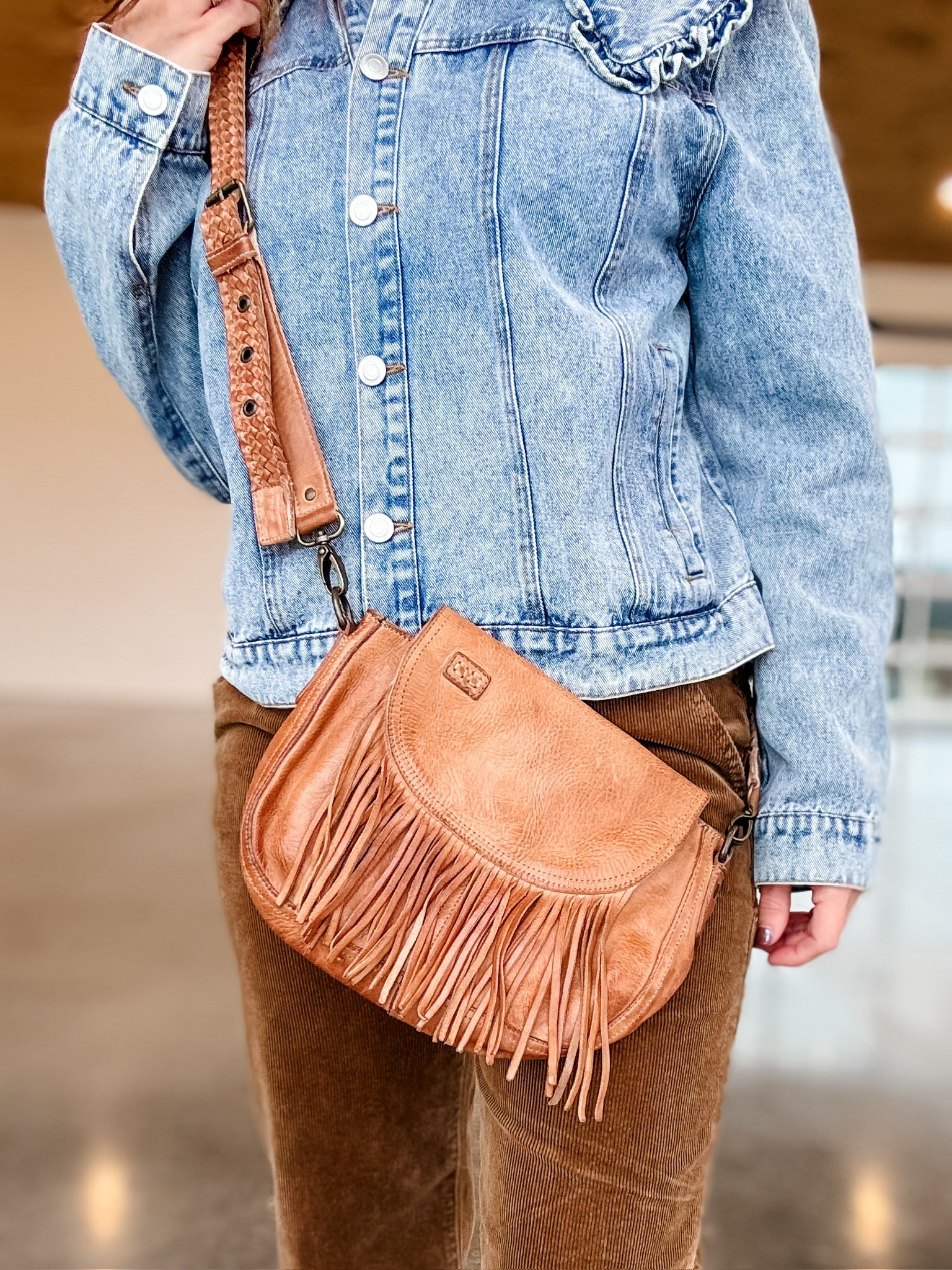 A fun fringe leather crossbody bag, the Eastend is a compact, easy, breezy handmade accessory every young lady should own. Bring this bohemian-inspired leather purse into rotation and let the good times roll.