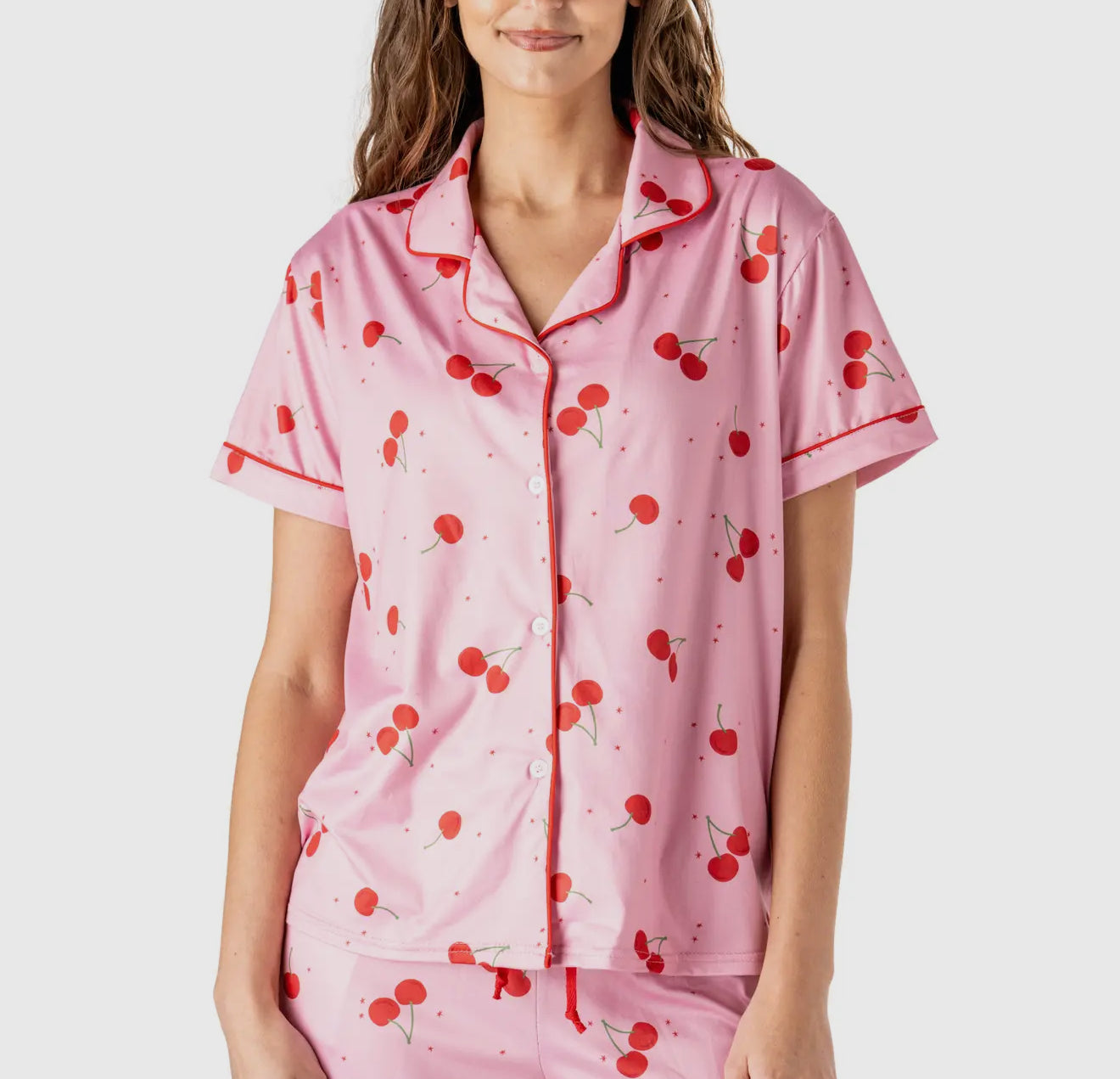 Elevate your sleepwear with the Hello Mello Cherry On Top Sleep Top. In a striking pink hue, this top is adorned with vibrant red cherries that add a touch of sweetness. Crafted from soft, comfortable fabric, indulge in a good night's sleep while looking stylish.