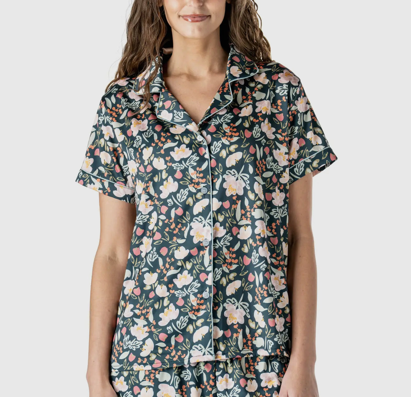 Introducing the Hello Mello Petals Satin Top, featuring a beautiful floral design and luxurious stain material. Stay comfortable and stylish in this perfect addition to your pajama collection. Elevate your sleepwear with this elegant top.