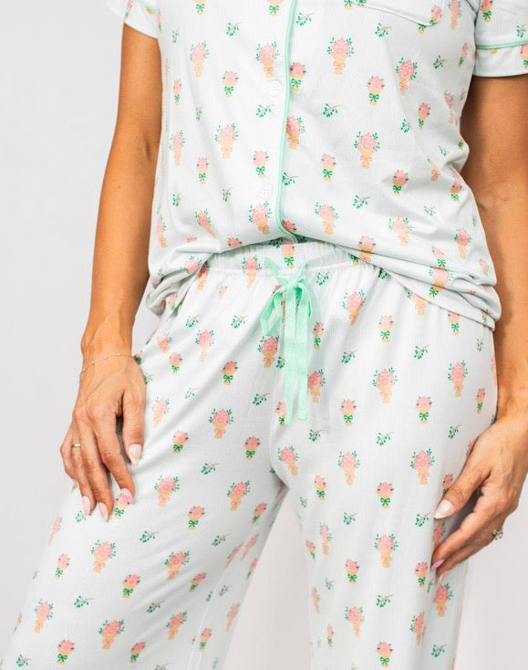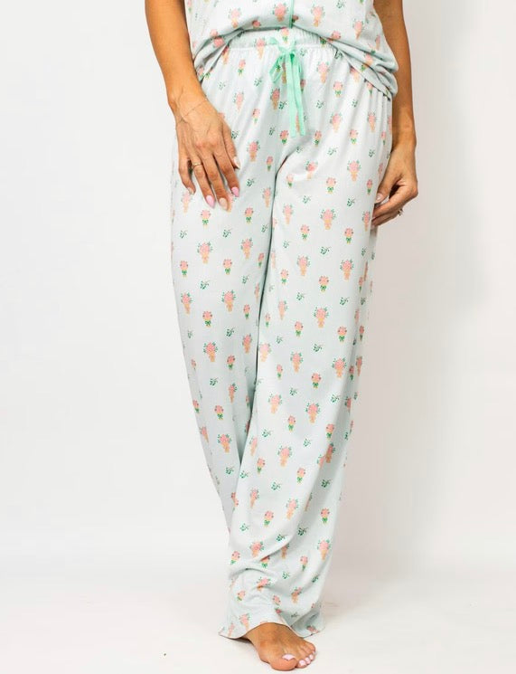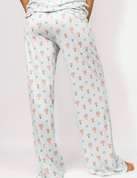 Love Blooms Here Sleep Pants — Relax in style with these white and multi floral sleep pants designed for women. Soft and comfortable, they bring a cheerful touch to your nighttime routine with a fresh, vibrant pattern.