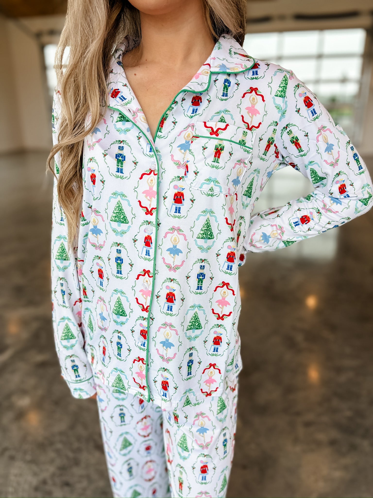 Experience comfort and holiday cheer with our Adult Nutcracker Pajama Top. Made with a nutcracker design, this pajama top will add a festive touch to your sleepwear. Stay cozy and stylish at the same time.