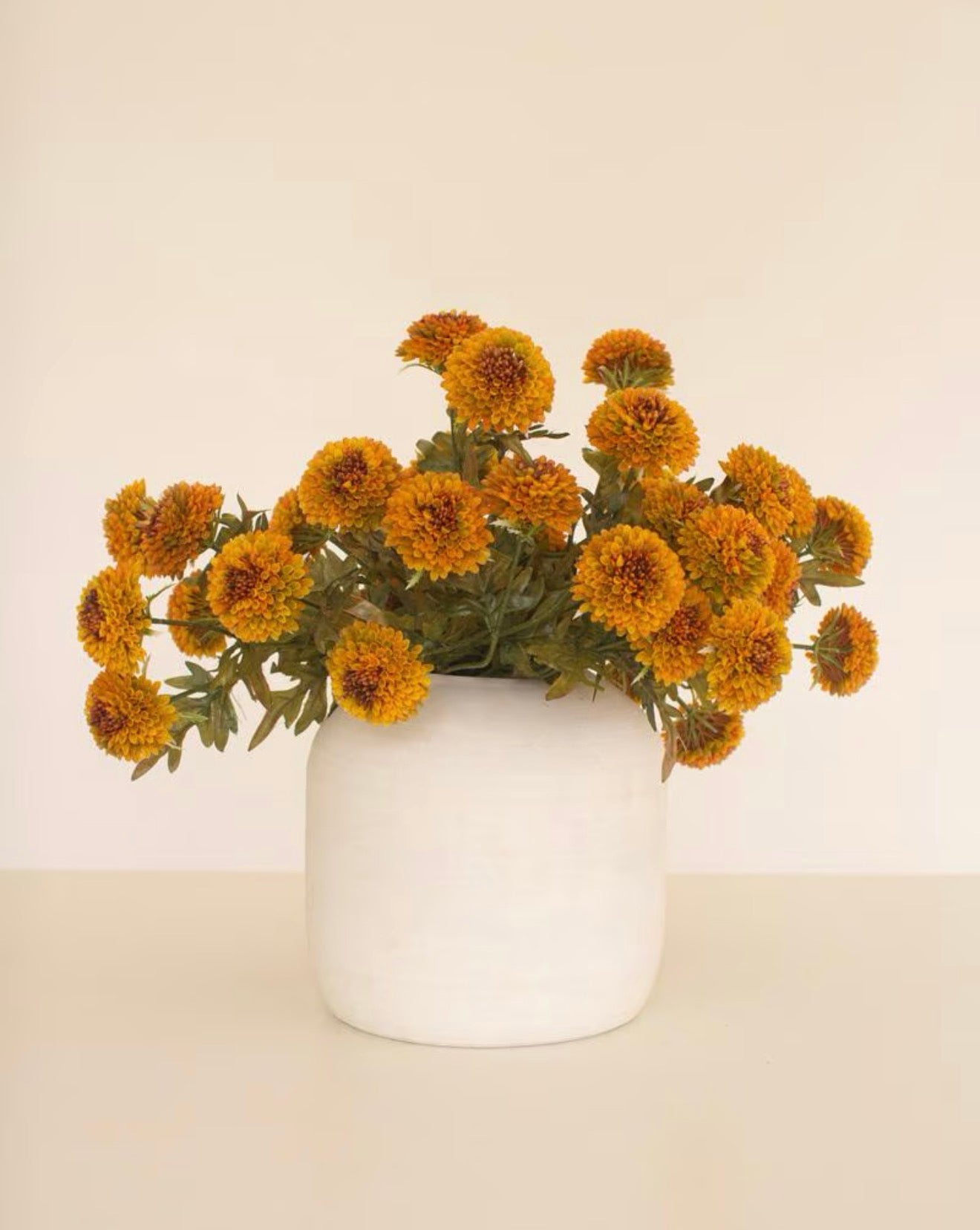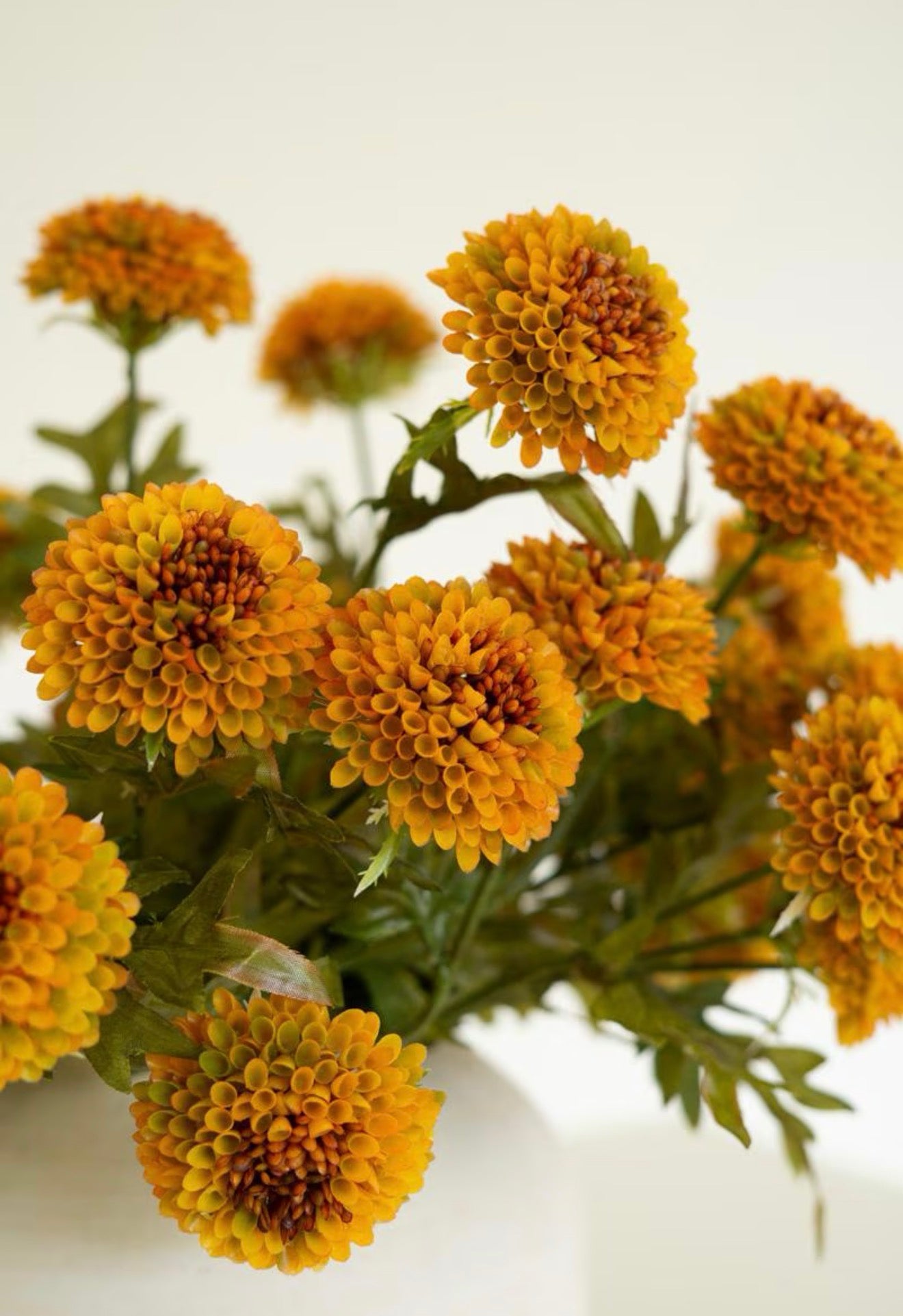 Artificial zinnias in Mustard add a pop of color to any vase or planter. Bunch this spray alone or mix and match with other colors. Make a fall bouquet with orange and yellow or spring into summer with bright red and purple coordinates.
