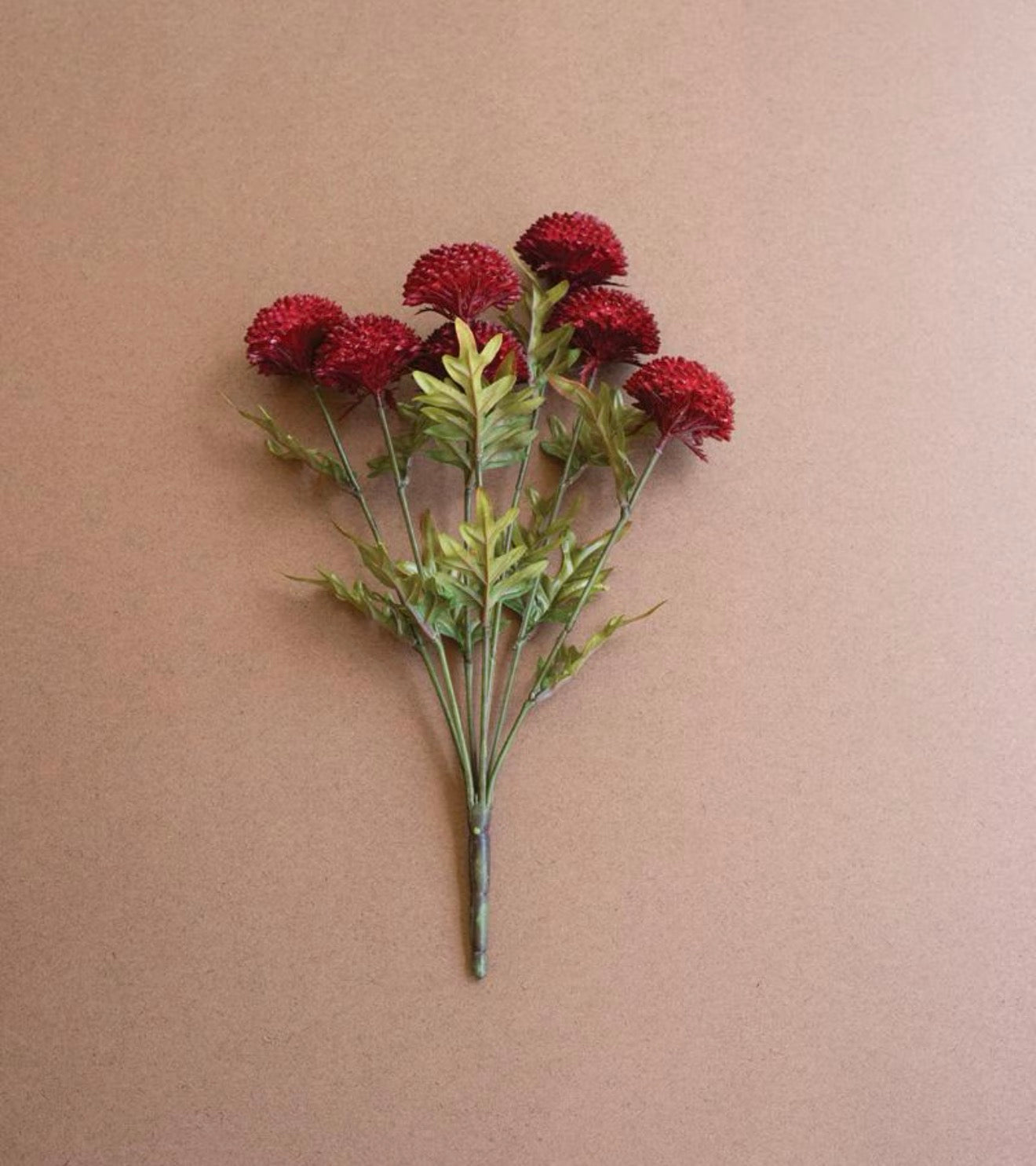 This bundle contains seven artificial red ball dahlias, expertly crafted to mimic the appearance of real flowers. Their vibrant color and realistic design make them suitable for various decorative applications, providing a lasting option without the need for maintenance or water, ensuring consistent aesthetic appeal throughout the year.