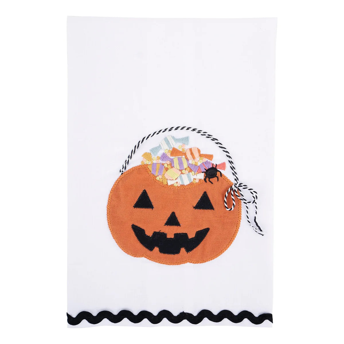 Sweeten up your kitchen decor with our Candy Pumpkin Pail Tea Towel! Featuring a playful design of a classic Halloween candy pumpkin pail overflowing with sugary treats, this charming towel adds a touch of festive fun to your home. Whether you're baking spooky sweets or simply adding a pop of color to your kitchen, let this towel evoke fond memories of Halloween adventures. Embrace the spirit of trick-or-treating and indulge in the delightful nostalgia of childhood fun.