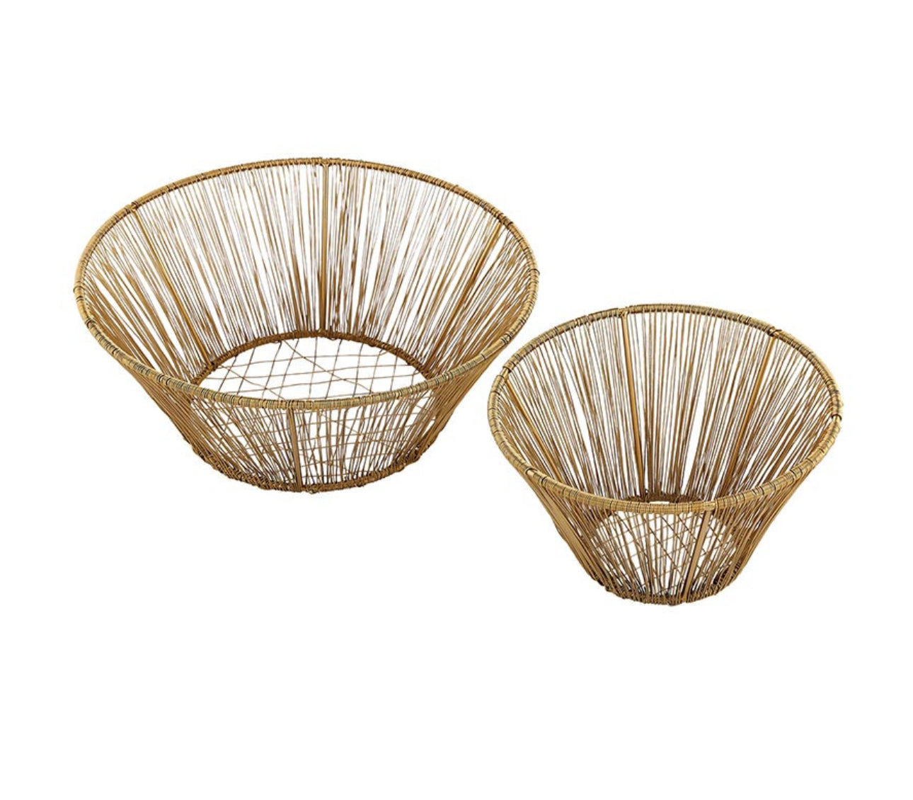 Elevate your home décor with the luxurious appeal of our Gold Deep Bowls Set of 2. Masterfully crafted from premium iron, these decorative bowls showcase an intricate woven texture with a stunning metallic gold finish that adds sophistication to any space.
