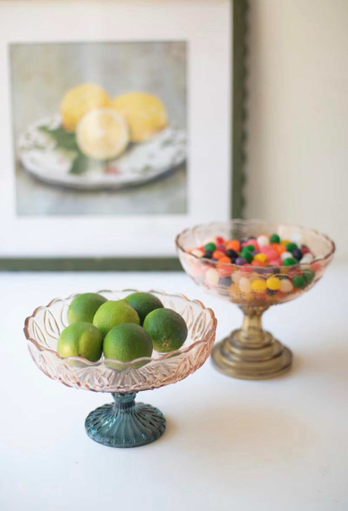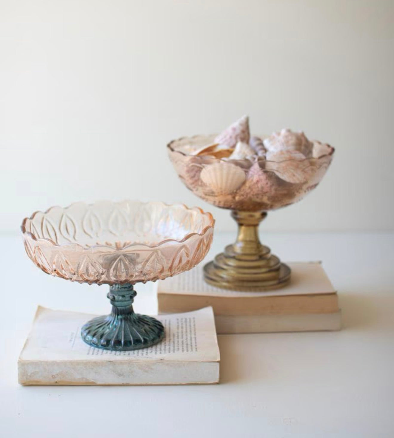 Decorative Glass Compotes - Blue Bottom is backordered and will ship as soon as it is back in stock.