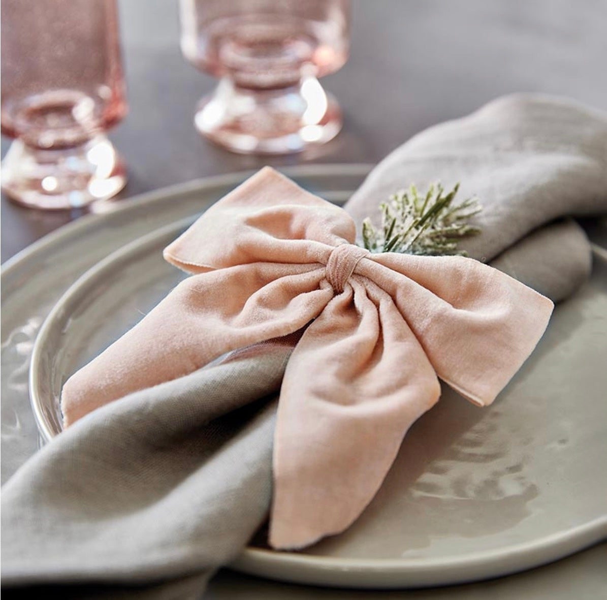 Dress up your table setting with our set of 4 luxe velvet bow napkin ties. Simply tie the string around your cloth napkin creating a festive look that is perfect for any occasion.