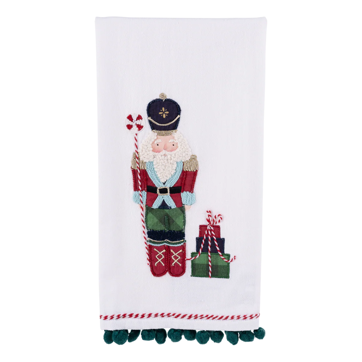 Add a festive touch to your home with the Nutcracker Tea Towel! This charming towel features a beautifully embroidered nutcracker soldier, complete with textured details, a candy cane staff, and holiday presents. Crafted from soft, absorbent cotton, it’s both decorative and functional—perfect for drying dishes or displaying as seasonal décor. A must-have for any Christmas enthusiast!